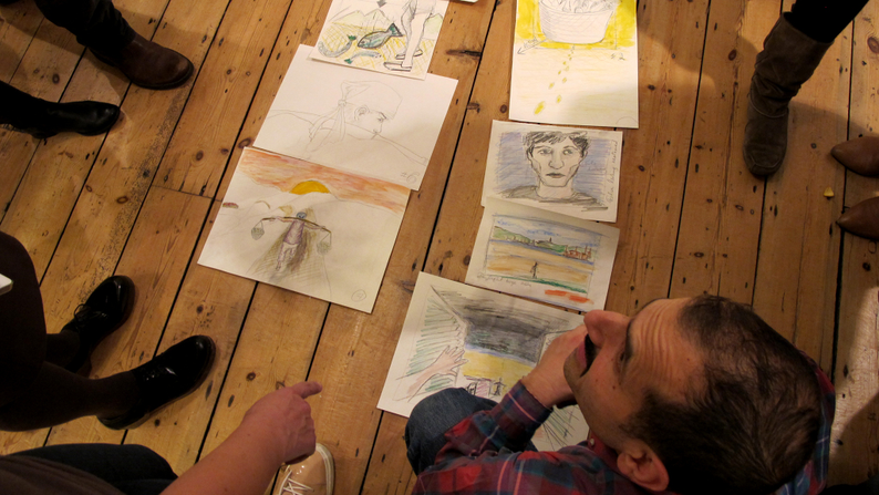 Picture 7, 8, 9 and 10: The course Storyboarding for Directors at London Film School with instructor Dylan Stone. Stone introduced me to the magic lantern tradition.