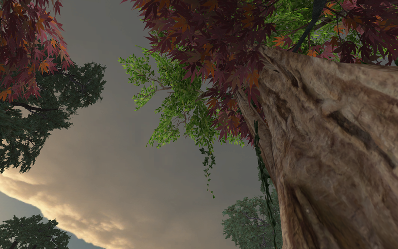 I have experimented with all these three approaches: 2D, 2,5D and 3D. In 2,5D and 3D, the mobile frame can move in-depth into the environments, but only the 3D space lets the reader explore it from all angels without breaking the illusion of a realistic environment. Turning around in a 2,5D environment would reveal that the elements are just flat, like cardboard figures. In scenes such as my 360-degree pan in Sound of the Aurora, I position the 2D graphics so that they always face the point from which they are viewed. I do this to retain the impression of the realistic world I established in the 2D drawings (Video 39).
