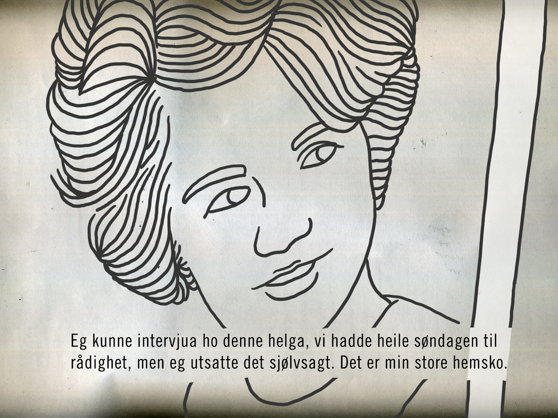 In making this digital comic, I worked closely with the programmer Hans Philip Eide, who programmed it in Actionscript for the Apple iPad. I also worked with the musician Stephan Meidell to create the musical score for the comic. I took recourse in my second supervisor, the professor of film Septimiu Moraru, and the comic artist Kim Holm as consultants at the storyboard stage, and to discuss the user interface. The work was first performed at St Mary’s Church in Bergen in March 2016, and finally published on iTunes Store on 8 May 2017. After the launch online, I performed Close, Closer, Closest four times in 2017 (at the book conference Nordisk Barnebokkonferanse at Sølvberget in Stavanger, at the art centre Hordaland Kunstnersenter, at Meridan Space in Beijing, and at the cultural centre Stormen in Bodø). In April 2018, the work won the Gold Award in the Norwegian Visuelt Competition. It won in the category of illustration / books and was the only digital publication represented.