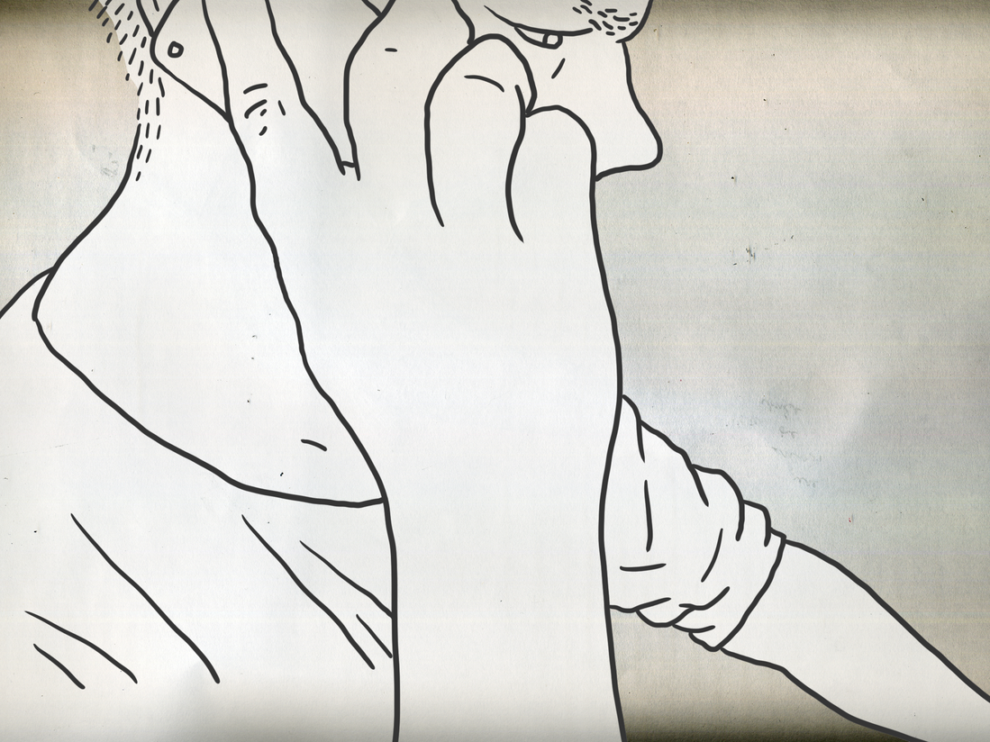 The visual expression of Close, Closer, Closest is very different from that of Sound of the Aurora. The biggest difference is that the drawings are simpler and only have solid outlines. This expression can be animated through classic animation techniques without setting up a disruptive contrast to the static comic sequences. I would describe the illustrations as stylized naturalism. I chose a more naturalistic style because the story is autobiographical. I show through my drawings that I can represent reality in a more confident way than when I draw, for example, my aunt’s story in Sound of the Aurora. It is closer to reality. The illustrations are drawn with a thick marker, and I have used glossy Scotch tape as a graphic element. The marker is, for me, similar to sketching with a pencil; it is a tool for making direct and honest drawings, since the process from the mind to the paper is short. The marker is also ruthless in the sense that it cannot be erased. I do not regret mistakes in the lines, and I embrace the imperfection in the drawings. This imperfection is lost in the roto-scope tracing of photographs, but the comic is an interesting mix of both. The marker line is a ‘naked’ expression, like a signature, and it works well in a personal story like this. The paper on which I draw also has a strong presence in the illustrations. This is because I have photographed all the illustrations, so the lighting on the paper surface is included in the final work. The Scotch tape is a material that is only expressive when the illustrations are photographed, in order for the tape’s surface to reflect light. I have been fascinated by real light in drawings since my childhood experiences of watching animation films. The backlighting effects in animated works such as Masters of the Universe amazed me. Real light, represented on a screen, is also a light source. In Close, Closer, Closest, I used the light to make dynamic illustrations. I photographed them with three different light settings. With these light variables, I experimented with dissolving images and gesture controls, where the reader can affect the reflections in the image by tilting the reading tablet.