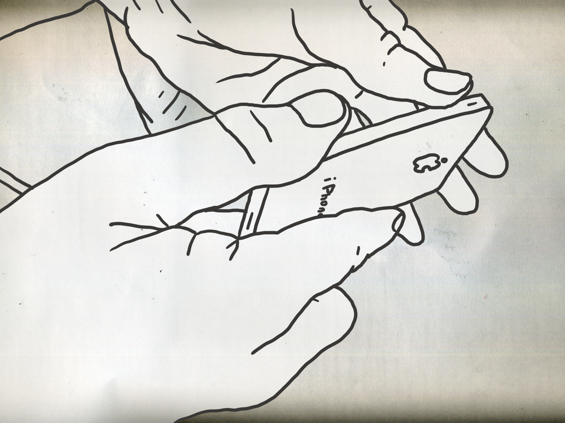 Picture 23: Holding the tablet and using the thumbs are a comfortable way to use the iPad, but it is not intuitive so a tutorial is needed. These pictures are from the tutorial sketches.