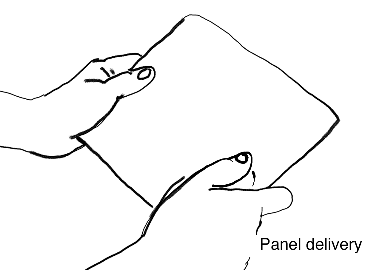 Video 83: A sequence of panel delivery I made in 2007. I experimented with the presentation form though I was not aware of the concept. Here the negative space is not visible, but I concider the negative space as the level where the panels are presented.