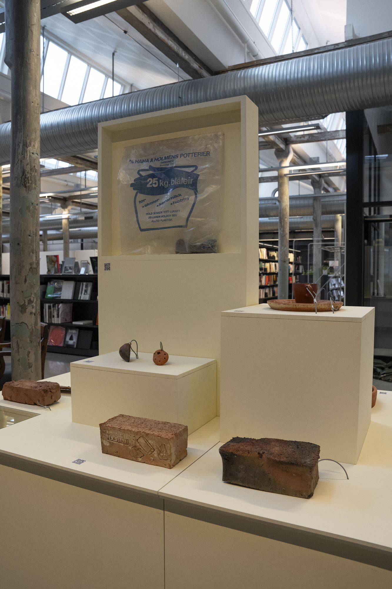 The reflection shelf contains significant objects for the project's development, which can be touched and handled. The shelf is located in the library of the Oslo National Academy of the Arts from 12.09.2024 to 12.09.2025. After this, I hope the shelf can be placed elsewhere at the Academy, if not in another public place. The same objects on the shelf are displayed on the homepage. The shelf is painted with clay paint from Auro paint supplier and was designed and built in collaboration with Brynjulf Krokstrand and Nicolas Ibaceta.