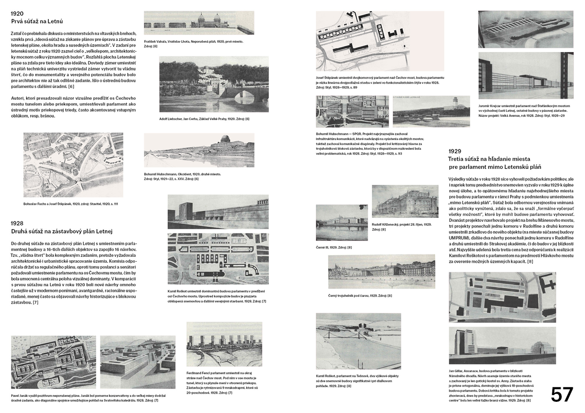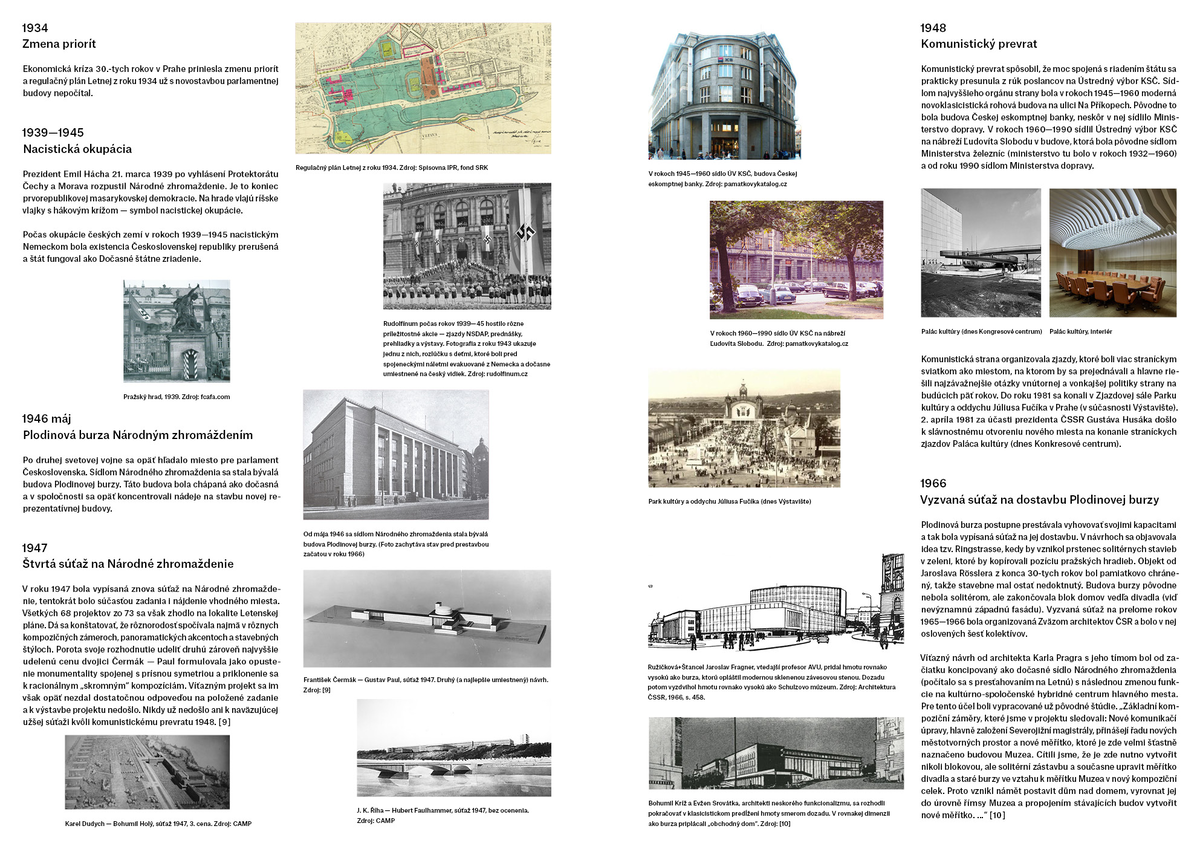 Sledujeme opakujúci sa fenomén: viacnásobné súťaže, ktorým sa nedostáva realizácií (v rokoch 1920, 1928, 1929, 1947). Parlament v budovách iného účelu (reprezentatívno-rezidenčný palác, filharmónia, plodinová burza). Moment stavby budovy Národného, resp. Federálneho zhromaždenia už so zámerom dočasnosti (1969). Nová republika v „staronovom“ parlamente (1993). Výsledkom sú opakovane provizórne riešenia parlamentných sídel v rôznych pražských stavbách iného účelu. Symbolické ukončenie časovej osi rokom 2018, kedy vláda Andreja Babiše opäť verejne formulovala dopyt po stávbách politickej moci vládnym prehlásením.