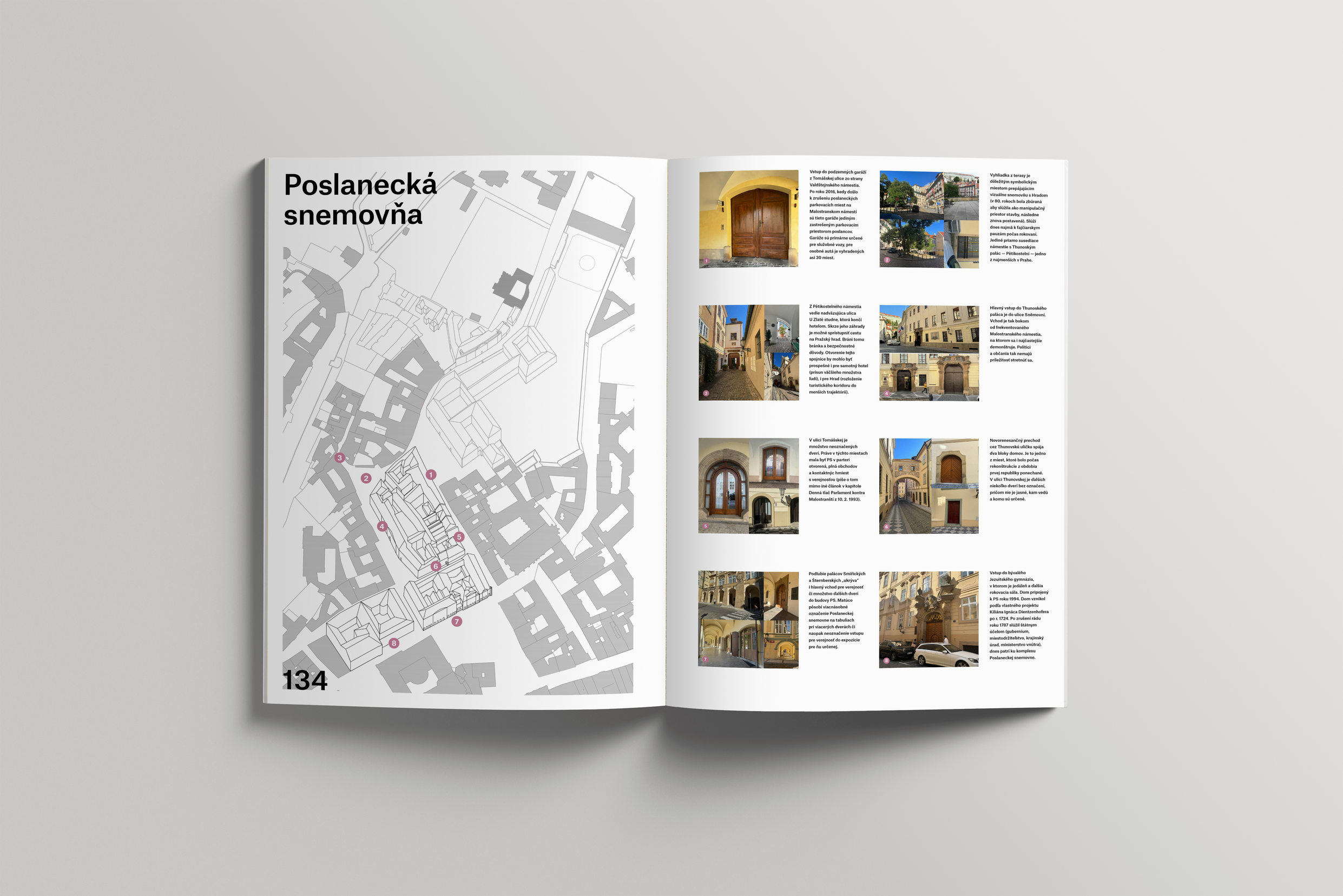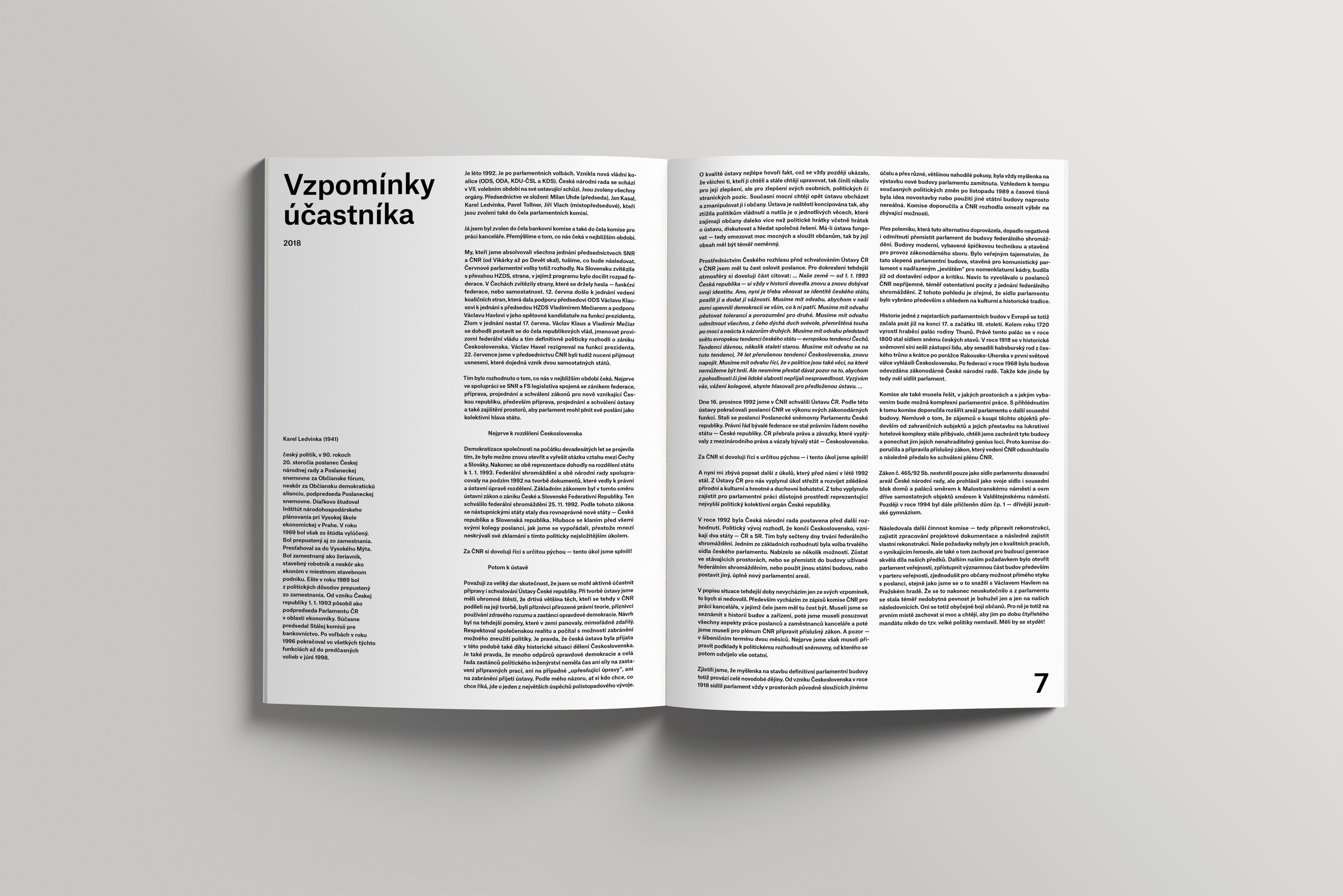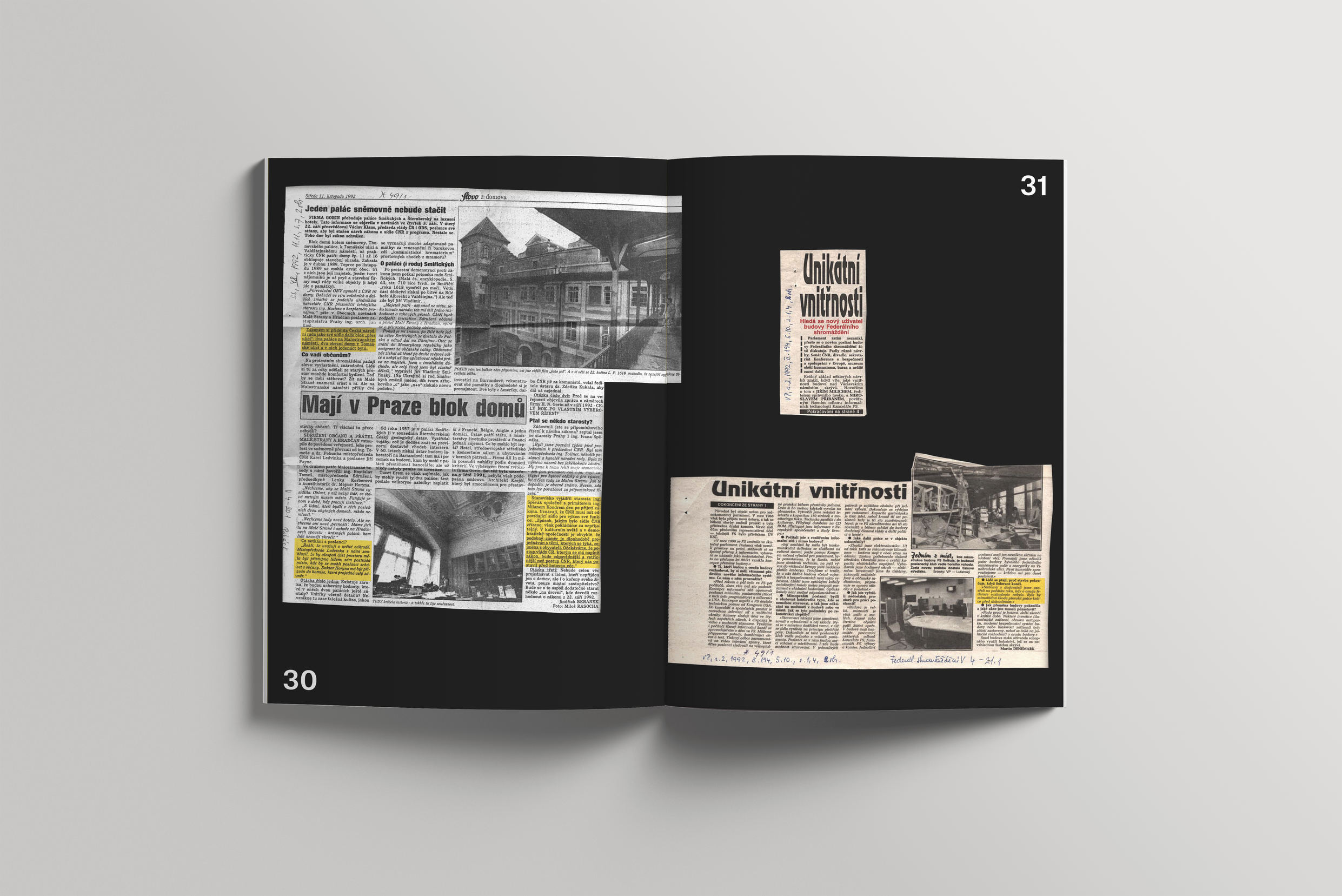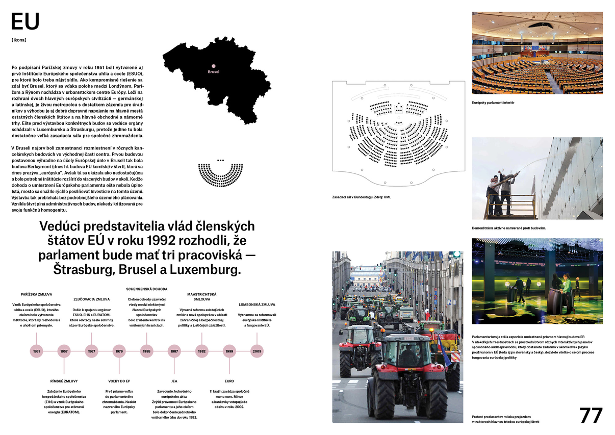 Ukážka dvojknihy Architektúra demokracie 1 (textová časť) a 2 (referenčná časť), kde sú obe časti v obsahovovm a obrazovom dialógu. Vznikla ako dizertačná práca Eleny Fialkovej na UMPRUM v ateliéri A4.