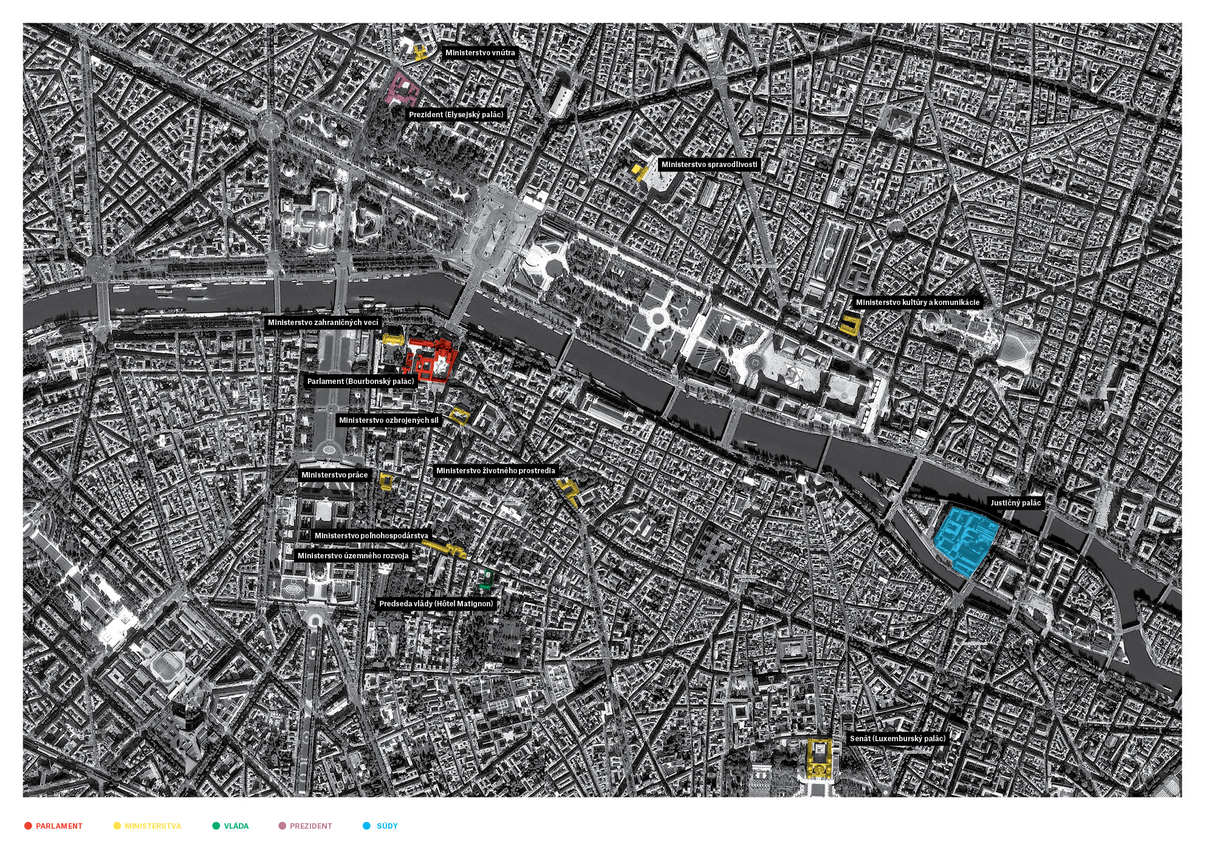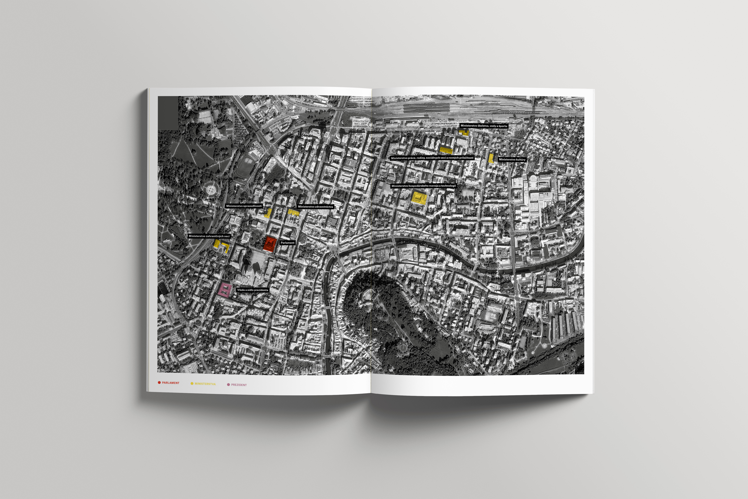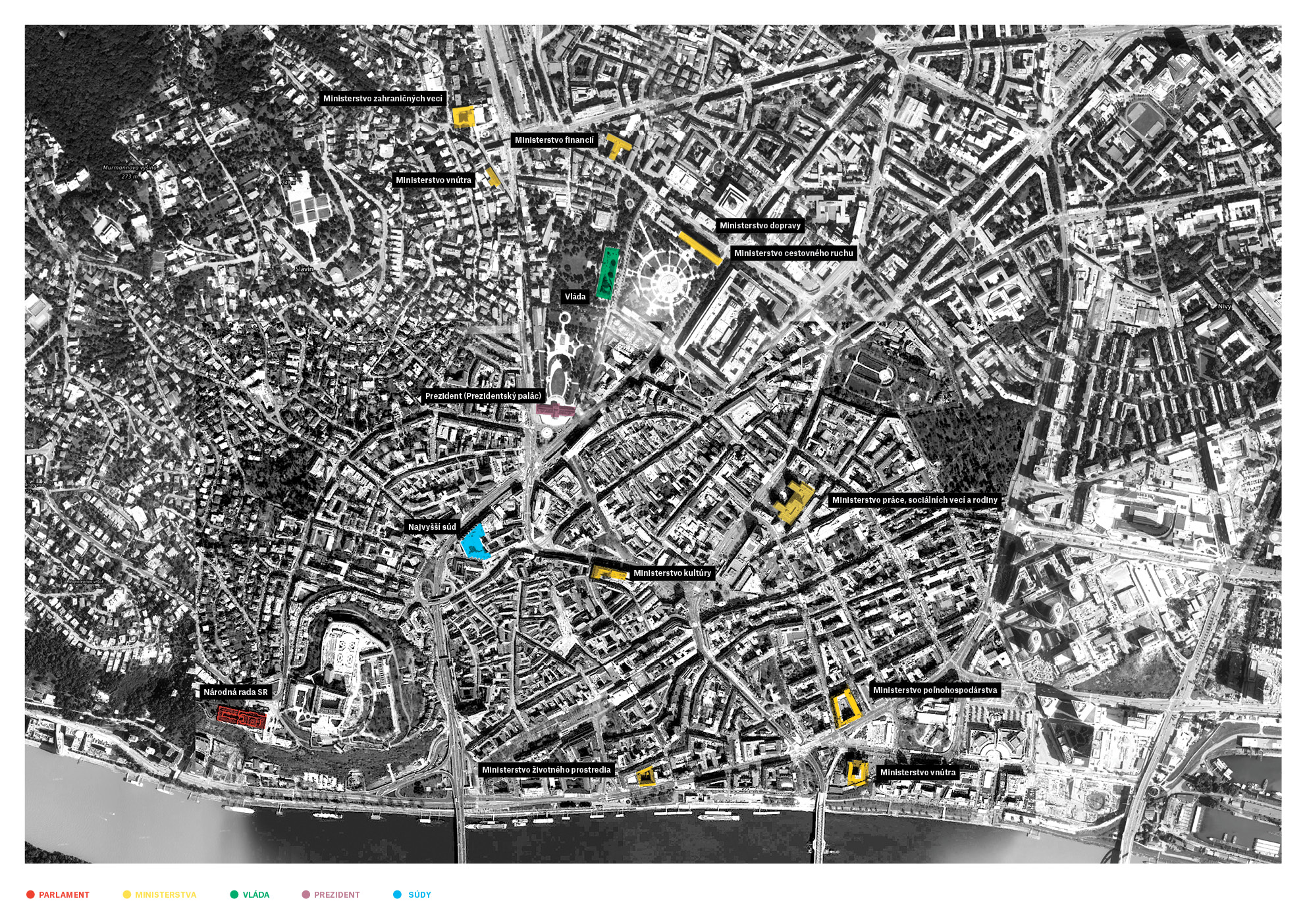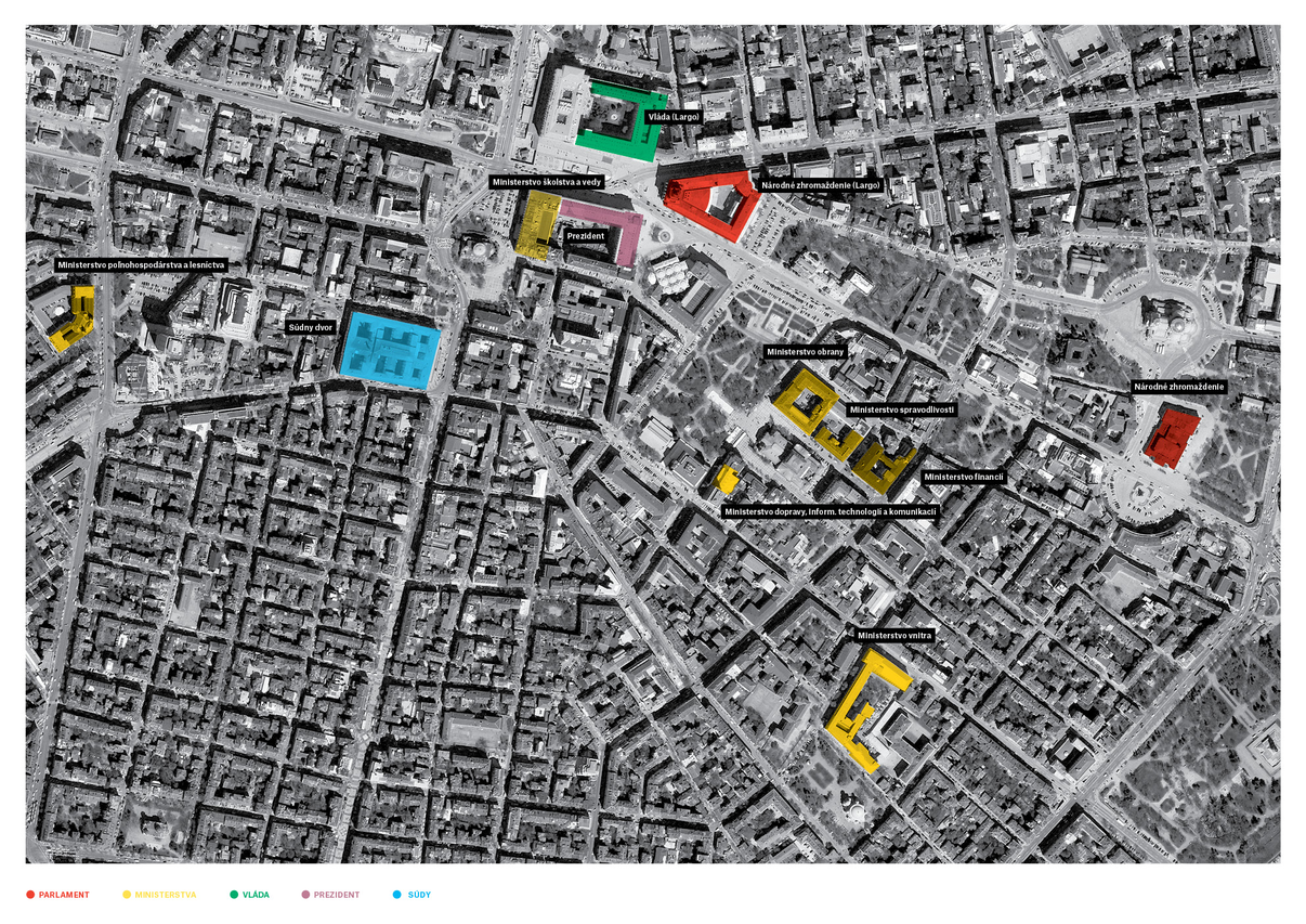 Akcent je opäť daný na budovu parlamentu ako reprezentatna demokracie v štruktúre mesta. Každý štát na časovej osi ponúka príbeh zmien politického zriadenia. Vybraných je niekoľko ilustračných fotografií. Mapy sledujú rozloženie politickej moci v štruktúre hlavného mesta (eventuélne jeho absenciu), možnú koncentráciu moci, mieru izolovanosti či naopak synergiu s ostatnými politickými budovami.