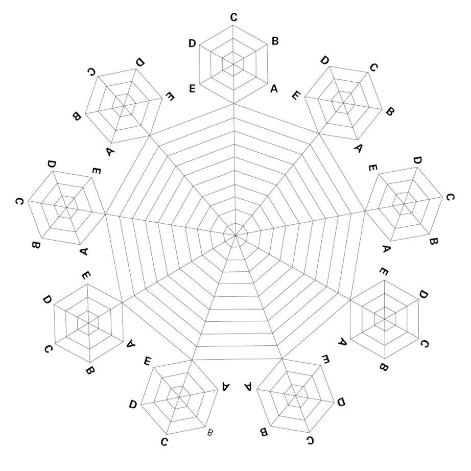 Pri pokuse o implementáciu všetkých 9 vlastností súčasne, vzniká schéma, v ktorej sloboda a rovnosť sú omnoho intenzívnejšie v symbióze s kontrolou rôznych foriem. Nasledujúca axonometria je schematickým znázornením, kde je zámerne robustnejšia miera kontroly než v realite pre potreby ilustrácie a uvedomenia si jej rôznych (všadeprítomných) foriem.