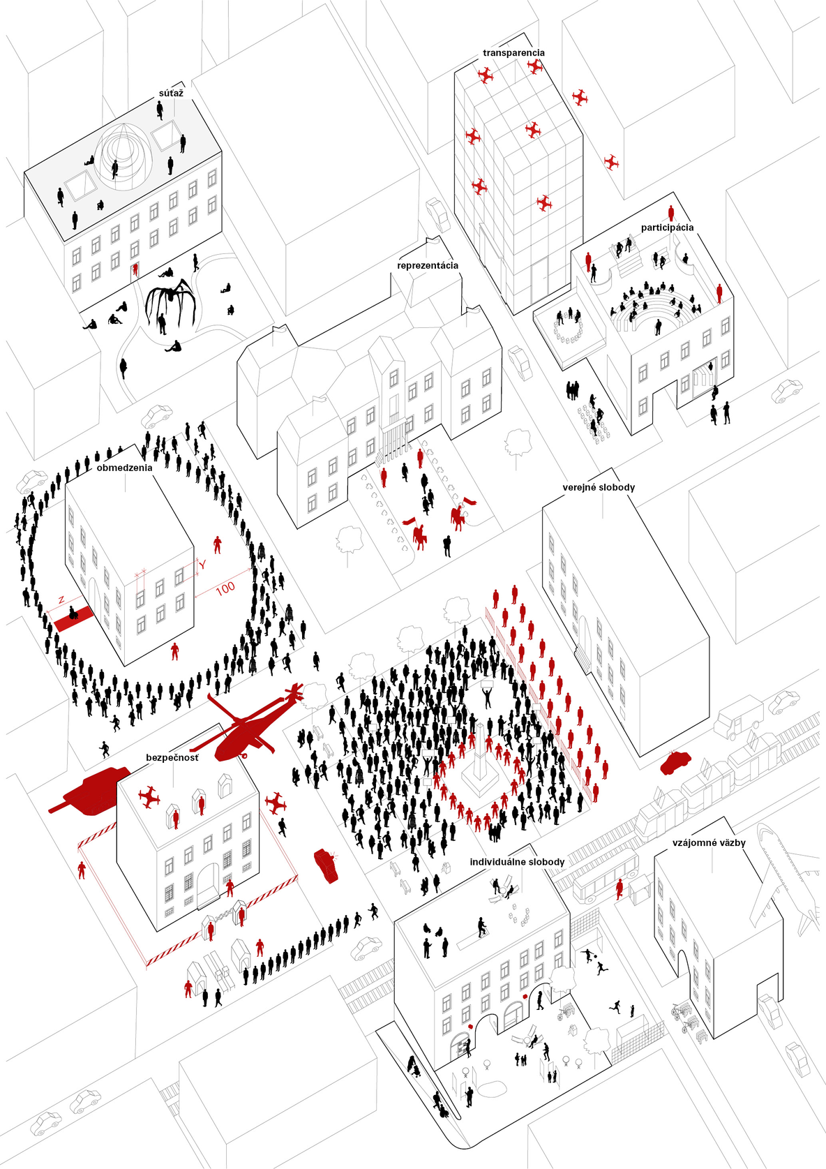 Aké vlastnosti by sme označili u stavieb ako demokratické? Je možné, že domy dokážu posilňovať dialóg medzi aktérmi, ktorí domy používajú? Je to skutočne tak, že na jednej strane má architektúra v meste svoje spoločenské postavenie, niečo reprezentuje, je nositeľkou hodnôt spoločnosti a na druhej strane je taktiež architektúra schopná vytvoriť priestor pre demokraciu, pomáha formulovať spoločenský a politický dialóg?