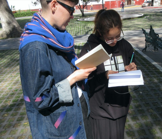 * After 5 minutes, swap positions with another writer, enabling you to write from the perspective of their position in space. Write for 5 minutes in relation to the same prompt as before.