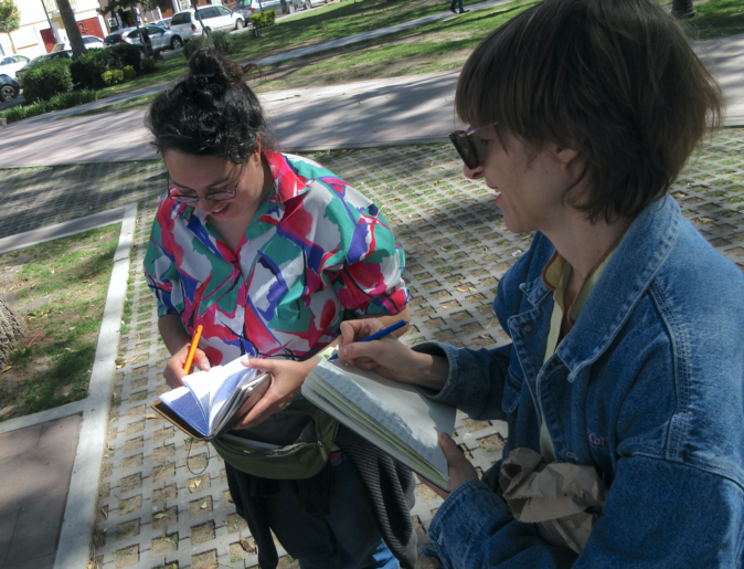 - Begin walking. After a moment or two, head in the direction of another walking-writer, joining them to walk side by side for a while – noticing your rhythms of walking, the sense of leading/following/coming into synchronicity.