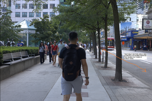 Situated at the intersection of urban sociology, performance studies and performance art, the interdisciplinary research project titled ‘The Unsold Stroll: Identifying and Disrupting the Performance of Consumerism on King Street West One Foot at a Time’ explores, on foot, forces have helped stage consumerism as the dominant spatial logic on many popular streets in contemporary Toronto—most notably, King Street West. King Street West has increasingly come to embody the logic of consumerism where both representations of space— those conceived by urban planners, developers, and policymakers—and representational spaces— the lived, embodied experiences and everyday performances of those who move through and dwell within the city, work in tandem to transform the street into a curated stage for the performance of consumption. Within this spectacle, alternative narratives—those that fall outside the logic of consumption yet remain vital to the richness and complexity of public space—are pushed to the margins. Yet, it is precisely within this tightly controlled and performative environment of consumption that a reflective and performative walker can carve out temporary ruptures—cracks in the spectacle—through subtle acts of presence, observation, and movement that gesture toward meanings beyond the consumer script. Drawing on Michel de Certeau’s concept of the “pedestrian speech act”, which views walking not merely as bipedalism but as a spatial tactic for ‘speaking’ and ‘writing’ the city, this project engages two research questions: How might the act of urban walking reveal the structural(representations of space) and performative(representational space) mechanisms tied to neoliberal capitalist logic that enforce the logic of consumerism on King Street West? And further, how might such a practice not only expose the underlying ideological forces but also disrupt them, even if only momentarily? Through a research-creation methodology this project unfolds in two parts: unfolds in two parts: Part I positions the researcher as a flâneur-as-detective and flâneur-as-producer—two aspects of urban flânerie popularized by 20th century German cultural critic Walter Benjamin—to stroll, observe, and document the structural and performative mechanisms on the street that uphold the logic of consumerism under the banner of urban revitalization. The documentation is conducted through photography and aphoristic text production. Part II introduces a performative intervention with five dancers who embody the figure of the performative flâneur, using dandyism, spoken word performances, and choreographed movement to momentarily disrupt the consumerist performance of the street, opening up alternative ways of engaging with urban space.