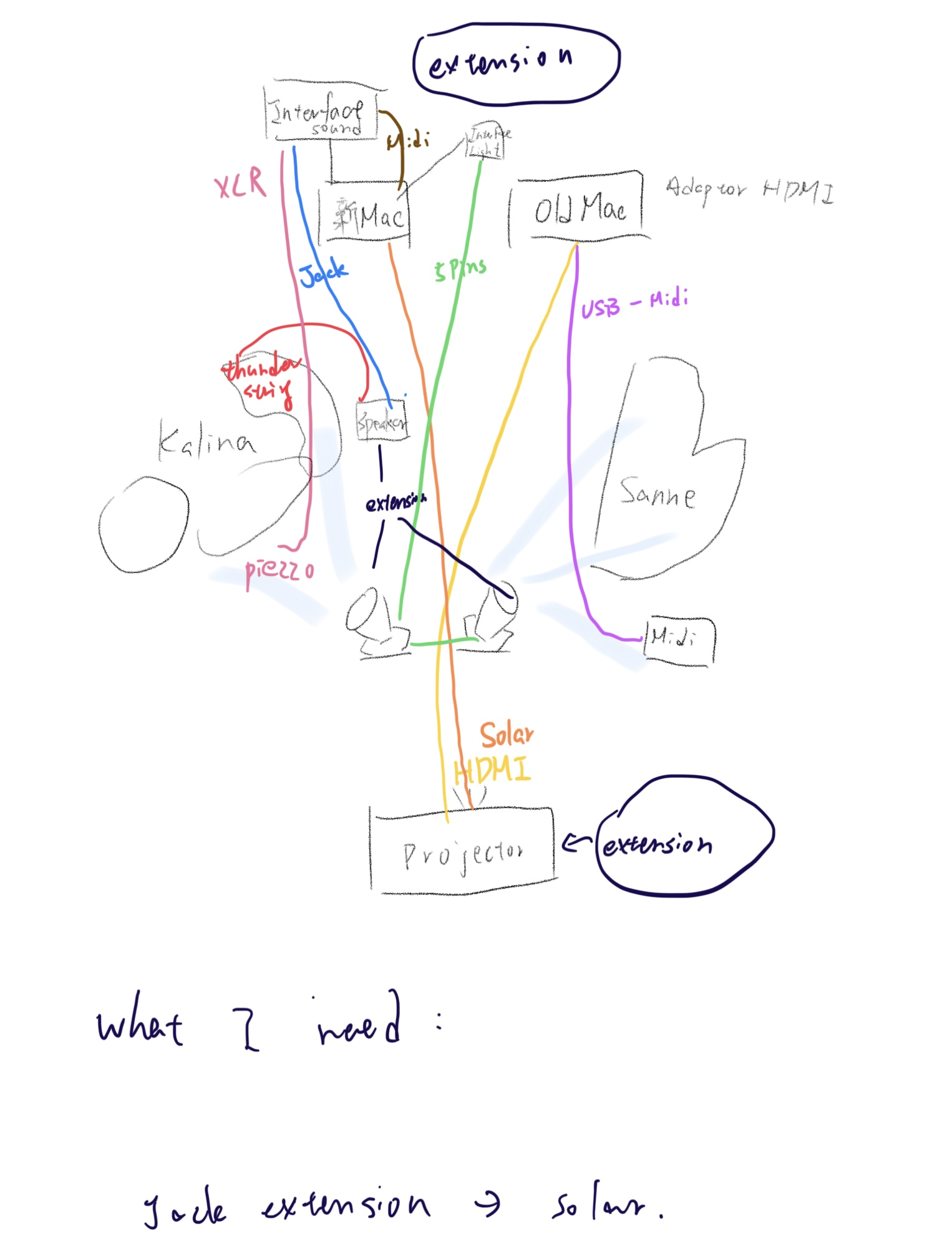 Additionally, working with raw oscillator sounds, such as triangle waves, revealed challenges in blending them with acoustic instruments. Experimenting with oscillators first, instead of deciding the instrumentation upfront, represented a new compositional approach for me. The process highlighted the need for flexible solutions, particularly in addressing technical issues like malfunctioning oscillators, cables, and dimmer packs.