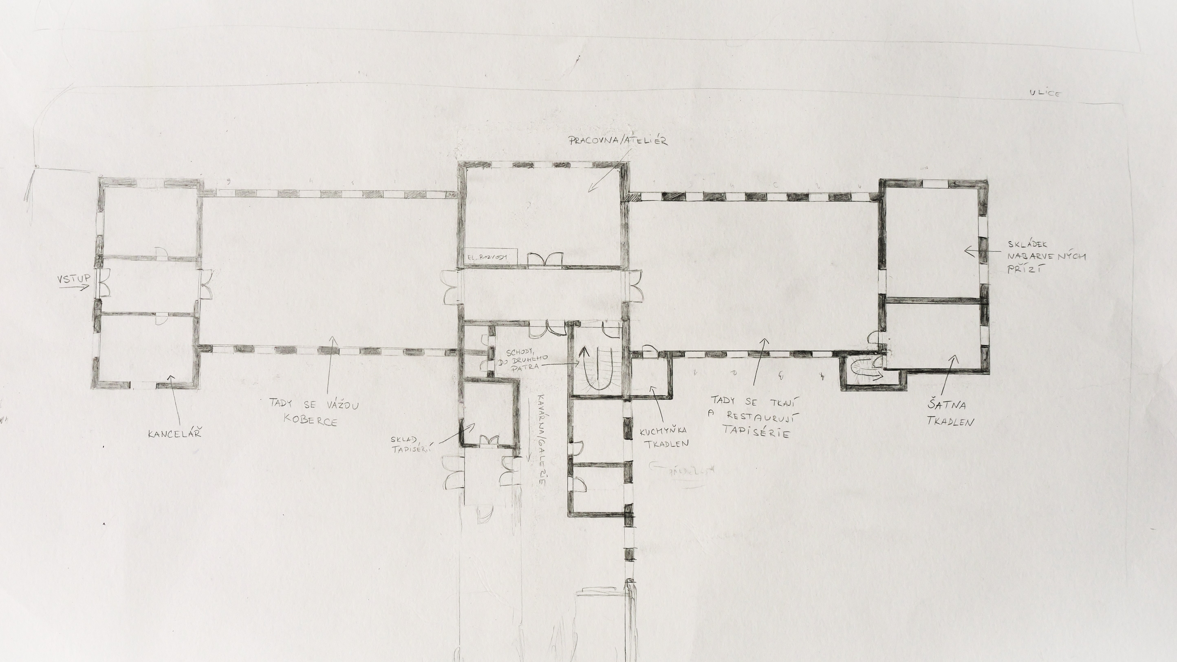 In this exposition, I invite you to the process of research carried out in the tapestry manufactory in Valašské Meziříčí. It aims to find out how to convey tapestries' craftsmanship, mediality and materiality through filming and post-production. The theme of transformation is essential: the transformation of the tapestry into a film image, but also the transformation of painting or graphics, which were the precursors of the tapestries woven in the manufactory. I am also looking for ways to use a primarily representational medium to achieve an effect of presence through materiality and corporeality. In my research, I interlace observational passages with stylized ones that emerge from a creative dialogue between the materiality of different media, artistic techniques, or post-production interventions. These methods can deepen not only the viewer's experience but also the documentary testimony and convey an almost tactile encounter with the filmed reality. Finally, based on practical experience, I distinguish working with materiality in film into three analytical cuts. V této expozici zvu do procesu výzkumu, jak skrze natáčení a postprodukci filmu o gobelínové manufaktuře ve Valašském Meziříčí zprostředkovat řemeslnost, medialitu a materialitu tapisérií a recipročně i filmové technologie. Podstatným je tedy téma proměny. Proměny tapisérie ve filmový obraz, ale i proměny malby či grafiky, které byly předobrazem v manufaktuře utkaných tapisérií. Paralelně hledám možnosti, jak pomocí média, které je primárně reprezentativní, docílit skrz materialitu a tělesnost účinku prezence. Ve výzkumu střídám observační pasáže se stylizovanými, které vzešly z tvůrčího dialogu materialit odlišných médií, výtvarných technik či postprodukčních zásahů. Tyto metody mohou prohloubit nejen divácký prožitek, ale i dokumentární výpověď a zprostředkovat až taktilní setkání s natáčenou skutečností. Nakonec na základě praktické zkušenosti rozlišuji práci s materialitou ve filmu do tří analytických řezů.