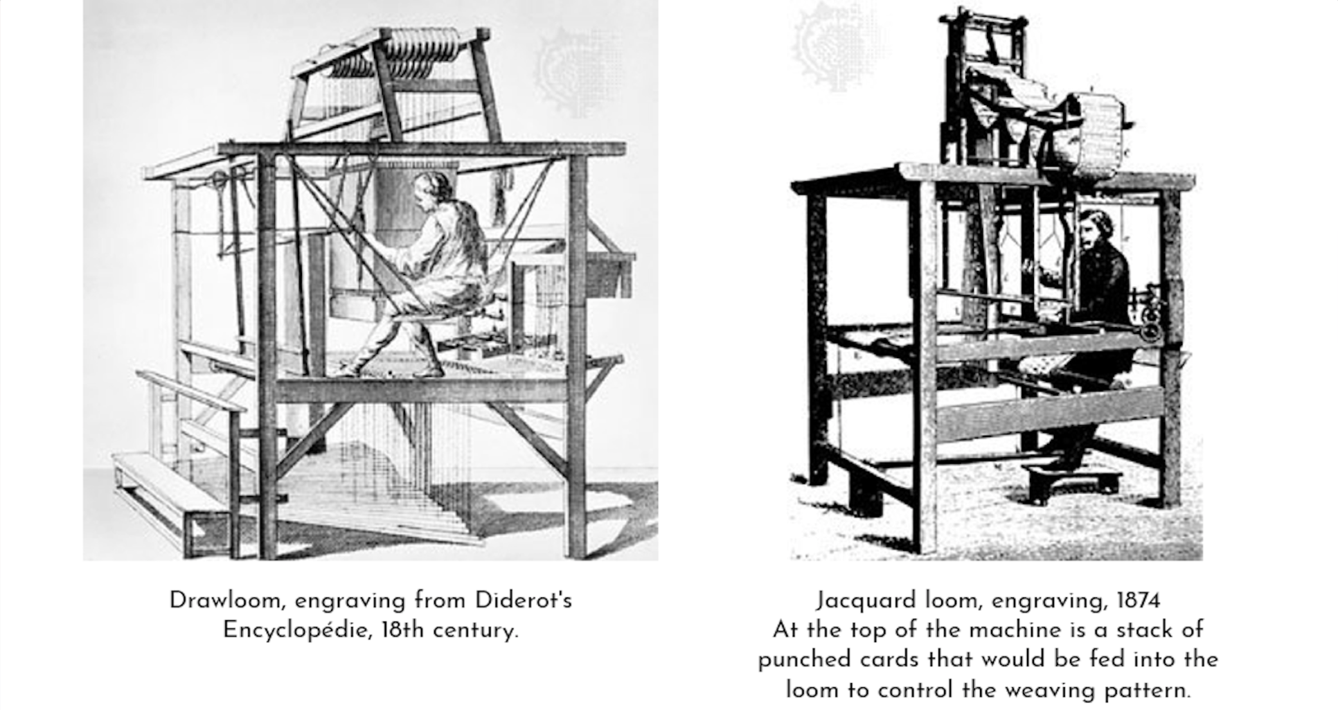 z textilní technologie. Autorka „prvního matematického softwaru“ Ada Lovelace (Evans 2020) dokonce hypotetizovala algoritmický tvůrčí potenciál takového digitálního stroje, čímž podle některých předpověděla umělou inteligenci (Evans 2020).
