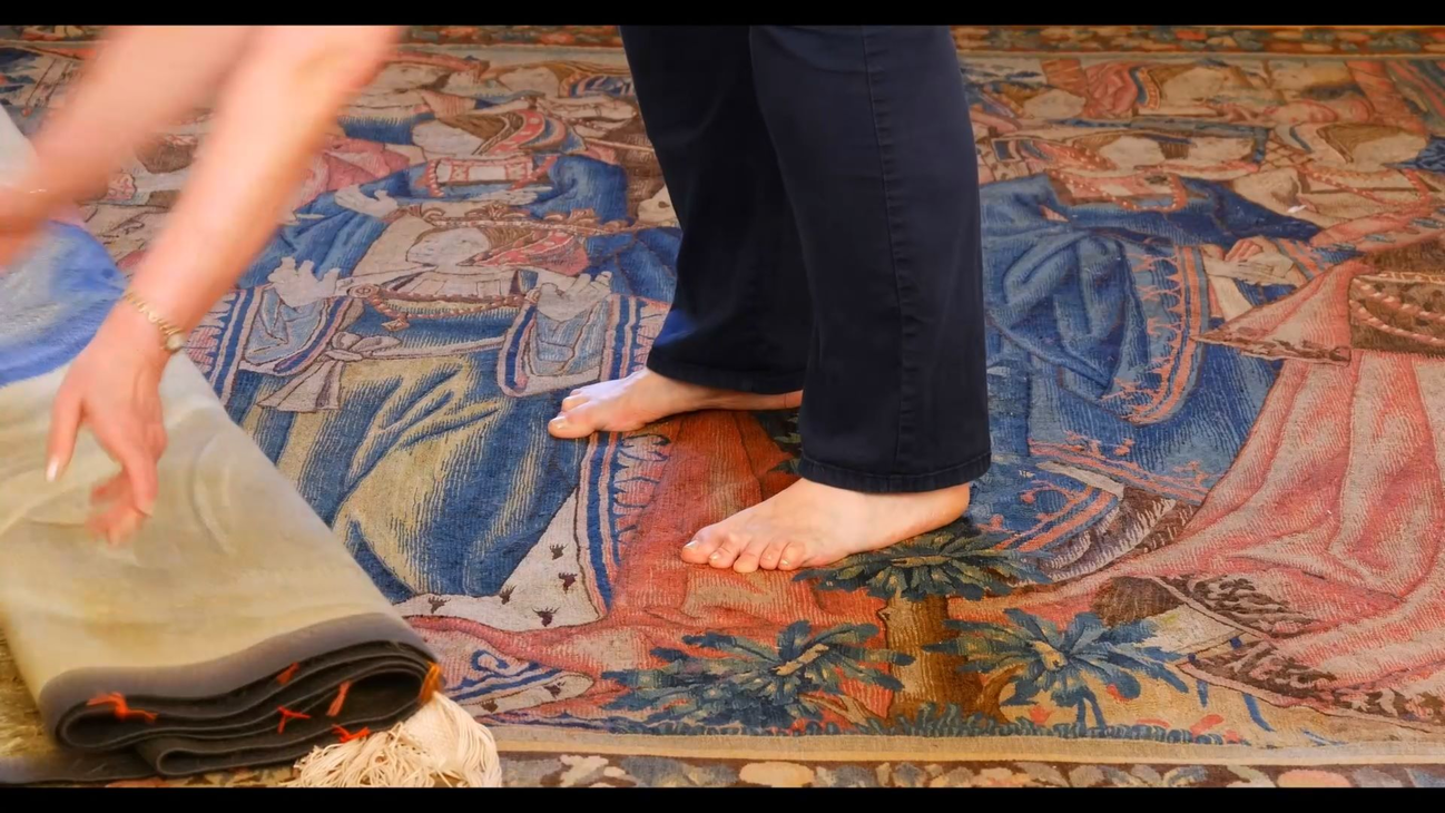 In this exposition, I invite you to the process of research carried out in the tapestry manufactory in Valašské Meziříčí. It aims to find out how to convey tapestries' craftsmanship, mediality and materiality through filming and post-production. The theme of transformation is essential: the transformation of the tapestry into a film image, but also the transformation of painting or graphics, which were the precursors of the tapestries woven in the manufactory. I am also looking for ways to use a primarily representational medium to achieve an effect of presence through materiality and corporeality. In my research, I interlace observational passages with stylized ones that emerge from a creative dialogue between the materiality of different media, artistic techniques, or post-production interventions. These methods can deepen not only the viewer's experience but also the documentary testimony and convey an almost tactile encounter with the filmed reality. Finally, based on practical experience, I distinguish working with materiality in film into three analytical cuts. V této expozici zvu do procesu výzkumu, jak skrze natáčení a postprodukci filmu o gobelínové manufaktuře ve Valašském Meziříčí zprostředkovat řemeslnost, medialitu a materialitu tapisérií a recipročně i filmové technologie. Podstatným je tedy téma proměny. Proměny tapisérie ve filmový obraz, ale i proměny malby či grafiky, které byly předobrazem v manufaktuře utkaných tapisérií. Paralelně hledám možnosti, jak pomocí média, které je primárně reprezentativní, docílit skrz materialitu a tělesnost účinku prezence. Ve výzkumu střídám observační pasáže se stylizovanými, které vzešly z tvůrčího dialogu materialit odlišných médií, výtvarných technik či postprodukčních zásahů. Tyto metody mohou prohloubit nejen divácký prožitek, ale i dokumentární výpověď a zprostředkovat až taktilní setkání s natáčenou skutečností. Nakonec na základě praktické zkušenosti rozlišuji práci s materialitou ve filmu do tří analytických řezů.