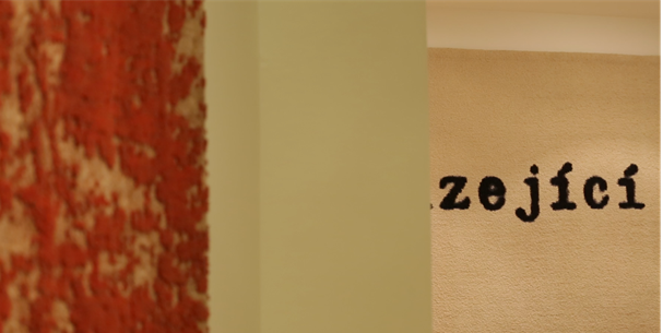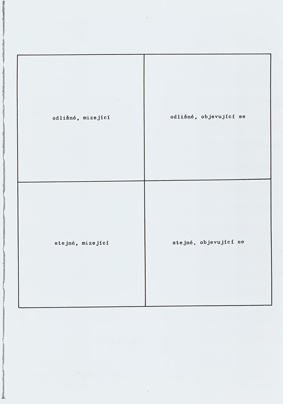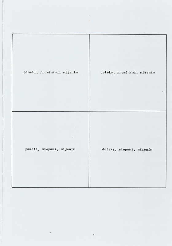 jako Valochovy strojopisy, které ale dávají vyznít materialitě slov(a) i povrchové textuře bílého papíru. Obdobně v případě tapisérie funguje členitá textura kobercových úvazů s jemně odlišnou délkou vlasu.