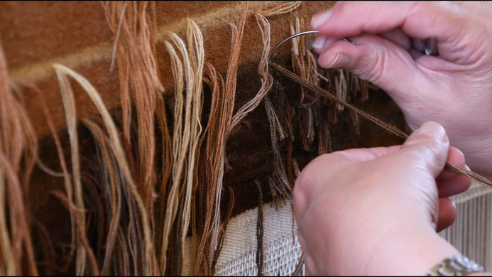 V podkapitole proces jsem se detailně zaměřil na observaci pozvolné časovosti vytkávání tapisérie a na silně materiální řemeslnost.