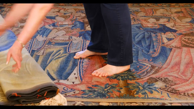 Pro tkaní gobelínu je též charakteristické stýkání textilního materiálu s těly tkadlen, které se musí ve tvůrčím rytmu na něj skrze vtělené vědění naladit. Právě v tomto tvořivém tajemství dochází ke styku materiality a tělesnosti, kdy se gobelín stává bytostí