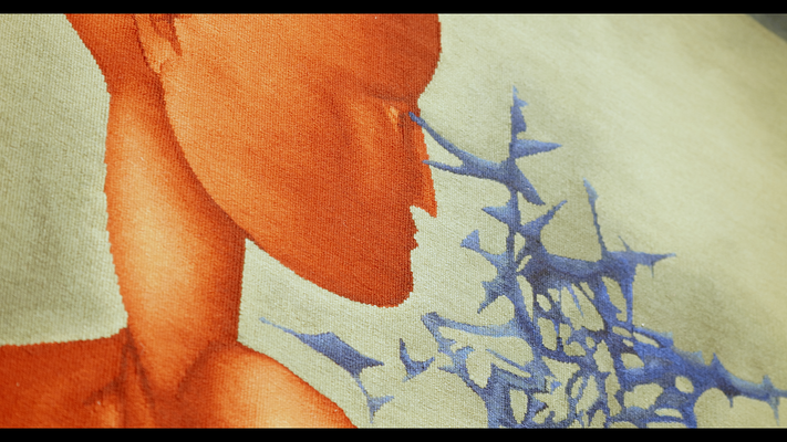 Dvojexpozice: ztracený originál malby se i díky reprodukční technologii fotografie zrodil ve dvou textilních originálech.