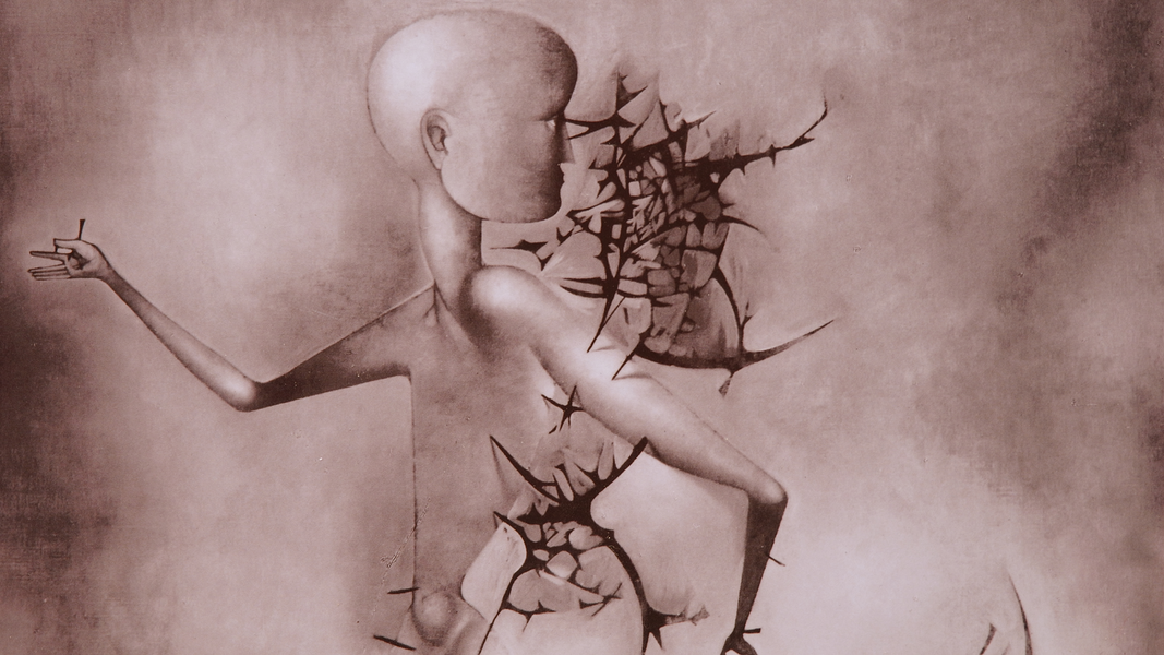 Černobílá fotografie ztracené malby Rudolfa Medka.