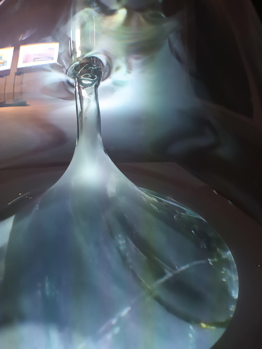 Snad nejzajímavější "plátno", na které jsem narazil: videoinstalace Garyho Hilla Klein Bottle with the Image of Its Own Making (after Robert Morris) z roku 2014 (na přelomu let 2023 a 2024 se objevila v Domě umění města Brna na výstavě Součty a rozdíly). Hill si za projekční plochu vybral Kleinovu láhev, resp. její v 3D prostoru nejbližší reálnou verzi (protože je v 3D prostoru striktně vzato nerealizovatelná). Kleinova láhev je objekt, který nemá ani vnitřek, ani vnějšek, její celý prostor je vyplněn pouze jedním povrchem. Stává se tedy nekonečnou plochou, která je zároveň sebezavinutým univerzem. Sebezavinutým univerzem na druhou, protože jak naznačuje doslovný název, Hill náročný řemeslný proces výroby Kleinovy láhve ve sklárnách důsledně dokumentoval kamerou a následně nechal promítat právě na samotnou láhev. Kleinova láhev je tak plátnem i schránkou, která v sobě nese tajemství vlastního zrodu. Tajemství doslova - díky výrazné prostorovosti objektu dochází k transformaci obrazu, a to nejen jednorázově, ale i dynamicky odvisle od pozorovatele. Obraz a jeho četné odrazy se zřetelně mění podle perspektivy pozorovatele, s každým tělesným nádechem.