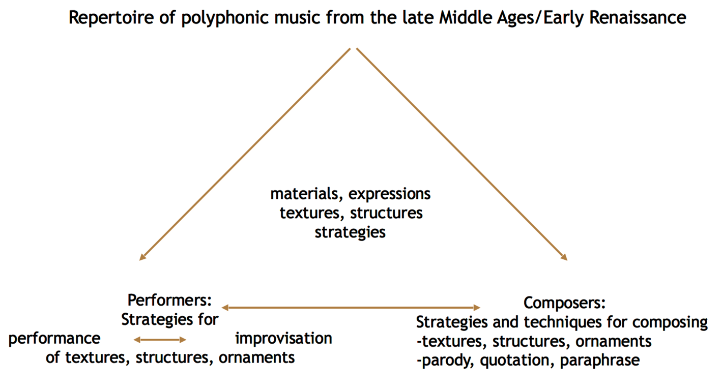 2. the performers´ interpretation of that repertoire, including strategies for improvising polyphonic structures and diminutions