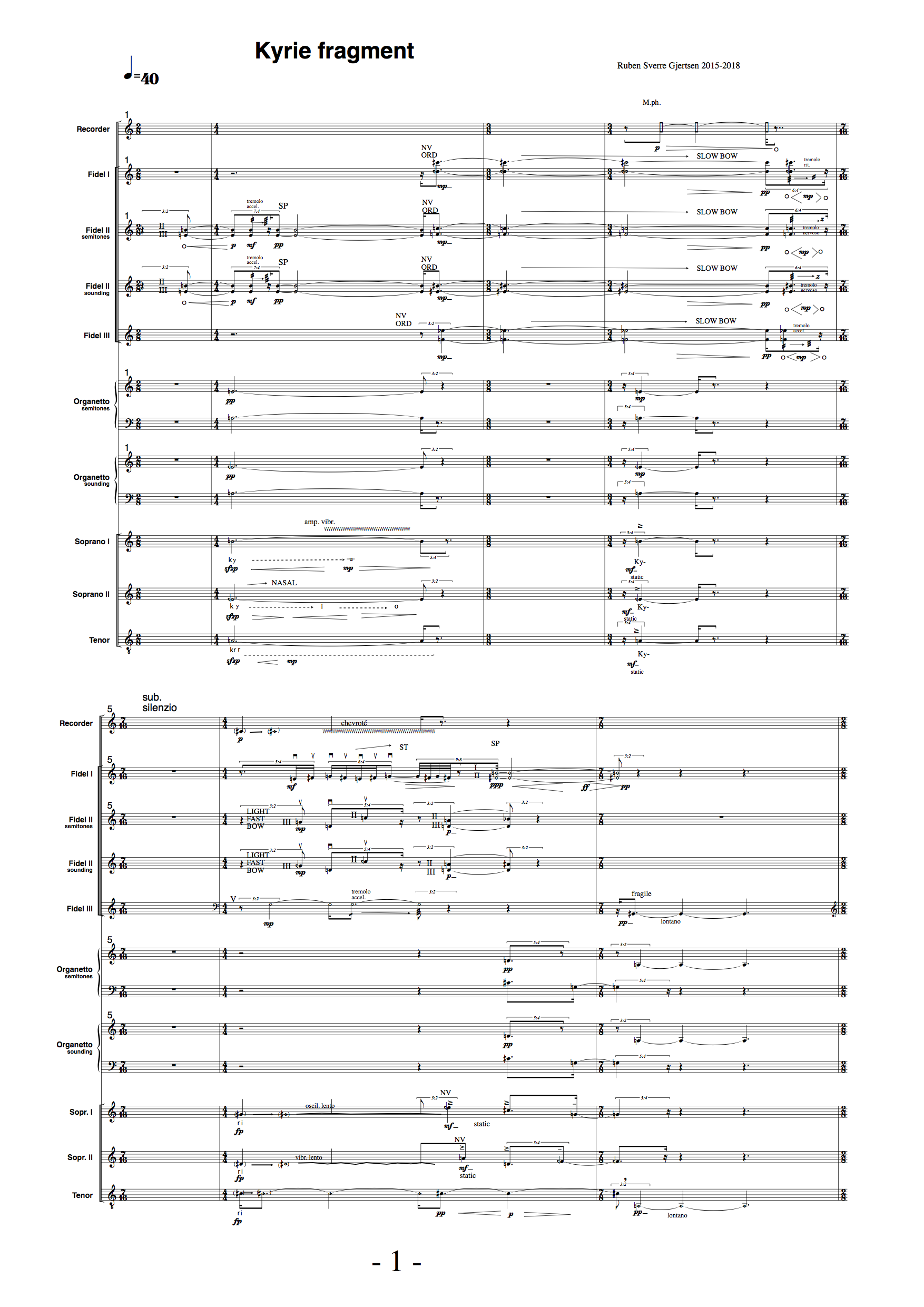An open fifth, cadence, and the initial "Ky" of the mass text are elements loaded with associations. We would only need a split second of a Kyrie fifth for it to stick in memory over vague microtonal and timbral elements. Many composers have used the mass text through history. Brian Ferneyhough noted it's independence towards any personal language.