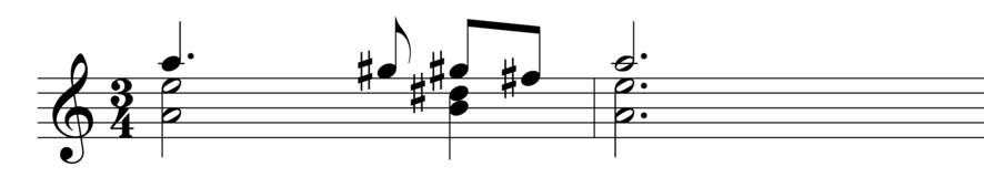 The opening measures of Matthias Spahlinger's orchestra work "Passage/Paysage" 3 is based on the opening chords of Beethovens "Eroica" symphony, with microtonal distortions and rhythmic deviations. The quotation has been blurred.