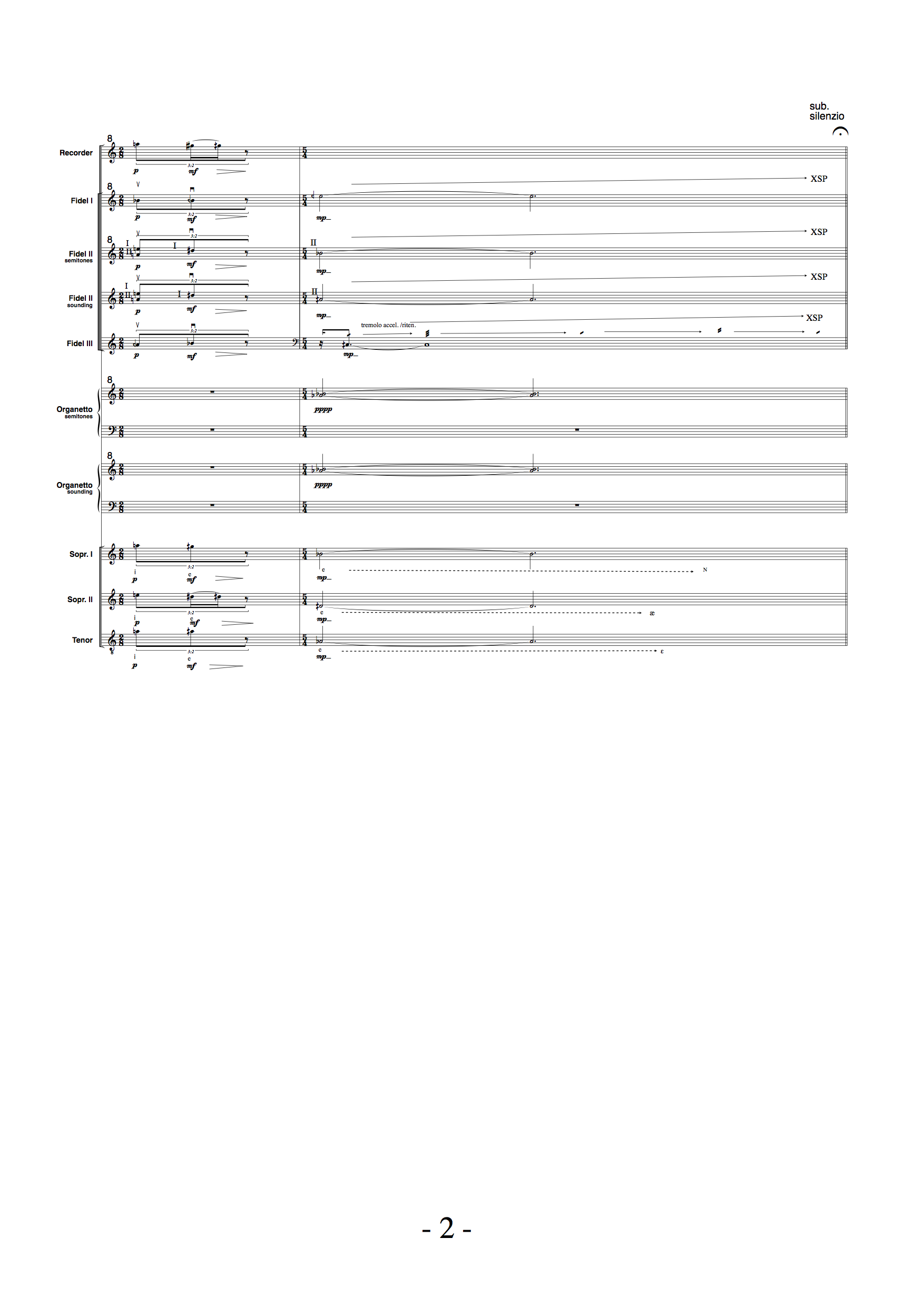I must admit an inspiration from Luigi Nono in this short first fragment. After a long and quiet sound, steps of contrast in duration and dynamics, a short and loud sound creates a surprise effect, while the rhythms make it hard to predict.