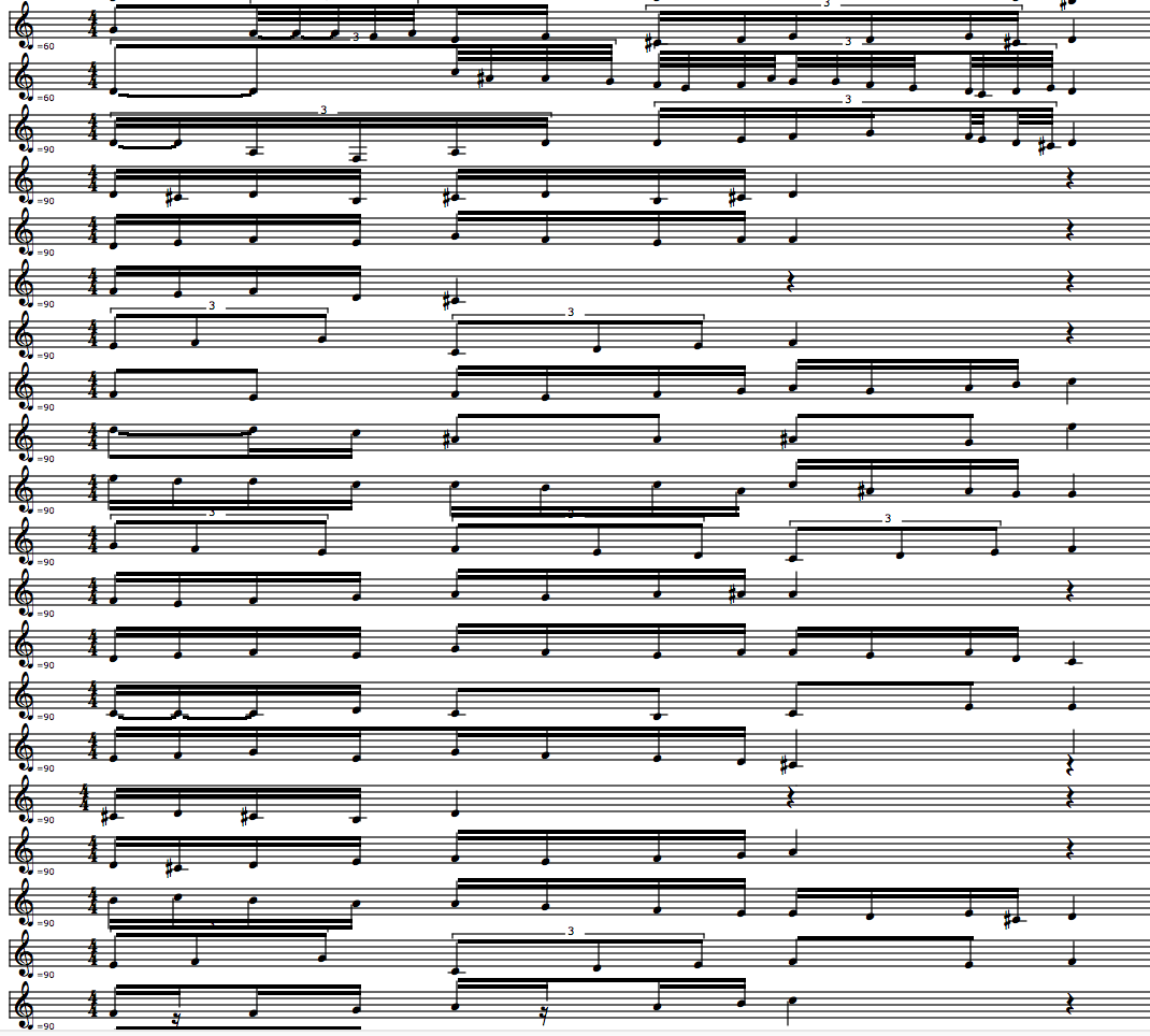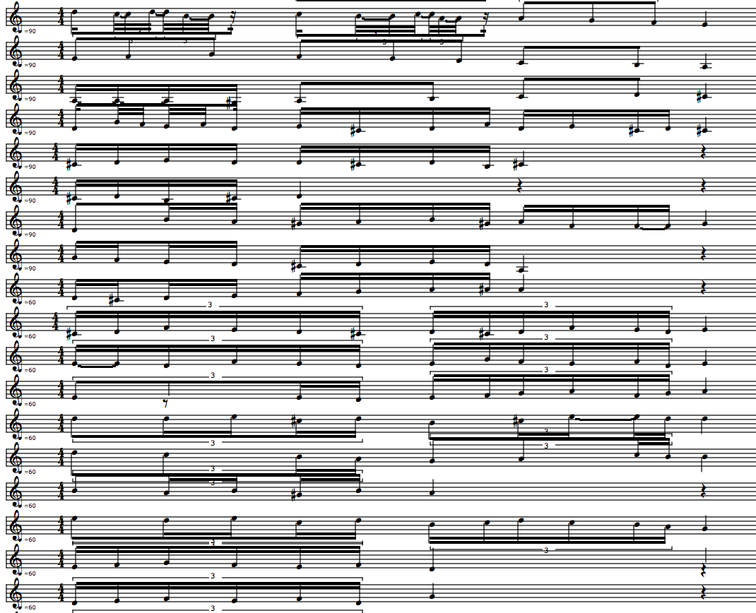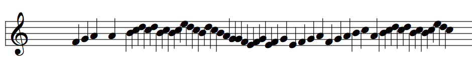 This is of course a grave simplification of how ornamentation works in a musical repertoire. When it is all ups and down, we are missing all the curlings and fluctuations around a pitch which we will find a lot of in the Codex Faenza manuscript. We have zoomed to far in. It is creating a world of self-similarity and repetition, while smoothening out stylistic characteristics of the original. Finding more sophisticated principles of melody segmentation would be a possible way to progress.