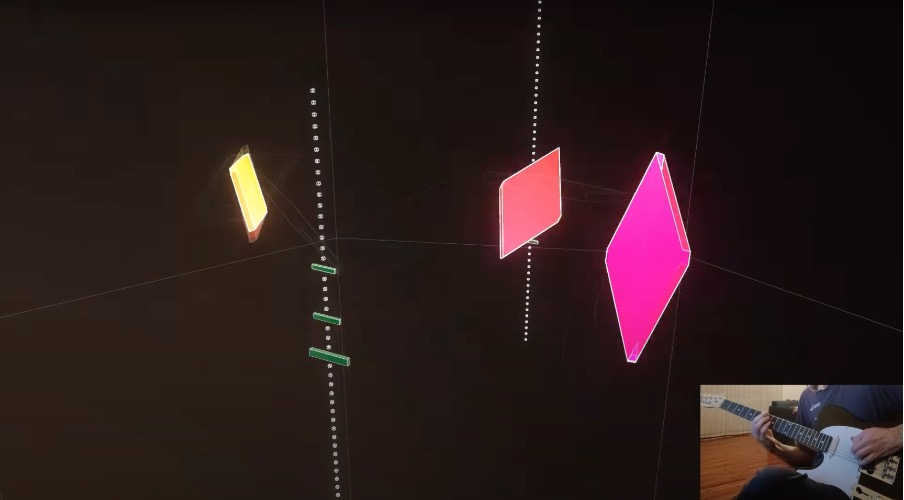 Lucio Arese is an artist, composer, guitarist, visual artist, and filmmaker, who creates visual forms and shapes using his electric guitar. His approach of generating dynamic visuals through sound was particularly inspiring, as it aligned with our own exploration of how sound can influence and shape visual arts. His work demonstrated the potential of combining sound and image in real-time, an idea that we were eager to experiment with in our own collaboration.