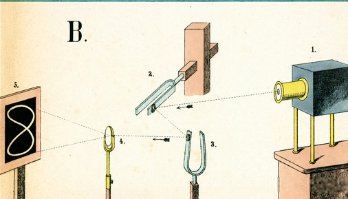 The shapes created by a harmonograph are known as Lissajous figures. In the mid-nineteenth century, French mathematician Jules Antoine Lissajous devised an experiment to visualize harmonic motion. He discovered that if a small mirror was attached to the tip of a vibrating tuning fork and a beam of light was directed at it, the vibration could be projected as a pattern onto a dark screen. Striking the tuning fork produced a simple vertical line, and when the light beam was cast sideways, it formed a sine wave. Curious about the results of combining motions, Lissajous placed a second tuning fork at a right angle to the first, introducing lateral movement. He found that tuning forks vibrating at simple frequency ratios created intricate and beautiful shapes2. These patterns, now called Lissajous figures, are formed by the interplay of two perpendicular harmonic oscillations. Their appearance depends on the relative frequencies, amplitudes, and phase differences of the oscillations. They range from circles, ellipses, and figure-eights to highly complex, symmetric designs at specific frequency ratios. I will explore the figures created by specific intervals in a later chapter, let’s now get back to the main character of the story, and let’s understand its history and its functioning (see 10.2 Music intervals)