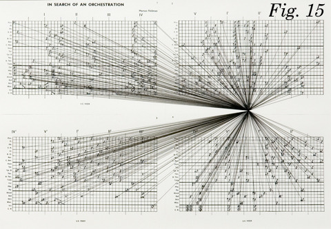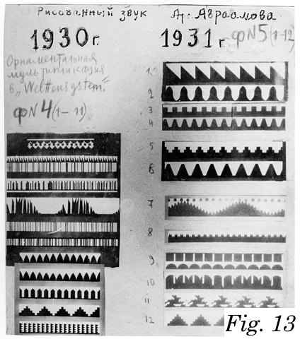 In music, Louis Bertrand Castel, an 18th-century French Jesuit, envisioned a "color organ" that paired musical notes with specific colors, inspiring later inventions like Alexander Wallace Rimington’s working color organ (fig.10). Aleksandr Skryabin’s Prométhée also featured a part for such an instrument, projecting colors tied to his synesthetic experiences. The advent of cinema in the early 20th century introduced new possibilities for visual music. Artists like Wassily Kandinsky explored abstract shapes and sound, while filmmakers such as Oskar Fischinger and Len Lye created synchronized audiovisual animations. Walt Disney’s Fantasia fused visuals and music in groundbreaking ways, earning recognition as one of the most universal harmonic artistic achievements of the 20th century11. Technological advancements revolutionized visual music. Oscilloscopes, light projection systems, and computer graphics gave rise to immersive audiovisual art. Pioneers such as John Whitney, Bill Alves, and Stephen Malinowski (creator of the Music Animation Machine) pushed the boundaries of this art form12. A connection to oscilloscopes and early attempts to visualize soundwaves can be seen in several historical inventions. For instance, Eduard Leon Scott de Martinville’s Phonautograph (1857), which drew waveforms as a method for recording voice (fig. 11). Rudolph Koenig’s Metronomic Flame (1862) visualized sound vibrations (fig. 12). Around 1930, Soviet artist Arseny Avraamov created hand-drawn motion picture soundtracks (fig. 13), and Oskar Fischinger used drawn waveforms to produce optical soundtracks in 1932, often synchronized with classical music. One final, often-overlooked example is music notation itself. While not always considered a standalone art form, its visual elements hold immense artistic and cultural significance, from Tibetan chant notation to the experimental scores of the 20th century (figs. 14, 15, 16). Although I won’t expand further on historical references here, I encourage readers to explore the mentioned figures and works if intrigued.