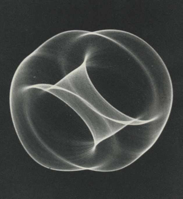 After exploring the historical connections between sound and image, we now narrow our focus to oscilloscope music, a captivating art form that transforms sound waves into visual patterns using an oscilloscope. This unique medium bridges the gap between auditory and visual experiences by directly displaying sound as moving, luminous shapes on a screen. Oscilloscope music relies on stereo audio signals fed into the oscilloscope’s X and Y inputs, creating dynamic visuals as the sound determines the dot’s position. Artists manipulate these waveforms to generate mesmerizing animations that are both heard and seen. Early explorations of oscilloscope art emerged in the mid-20th century, with pioneers like Ben Laposky creating oscillons by photographing patterns generated on cathode ray oscilloscopes. Later, the medium inspired experimental works like the audiovisual performances of Jerobeam Fenderson, whose intricate shapes and animations pushed the creative boundaries of this art form13. Alberto Novello (a.k.a. Jestern) is also a source of inspiration about oscilloscope art14.While Jerobeam Fenderson’s work is a major contemporary reference for oscilloscope music and undeniably remarkable and inspiring, his technique—generating 3D shapes first and then converting them into sound signals—differs from my artistic perspective. In my work and this research, I aim to distance myself from this more artificial approach and remain faithful to the oscilloscope's pure, abstract representation of sound. This approach aligns with my artistic vision and the spiritual and philosophical concepts that underpin my exploration of sound and visual connection.