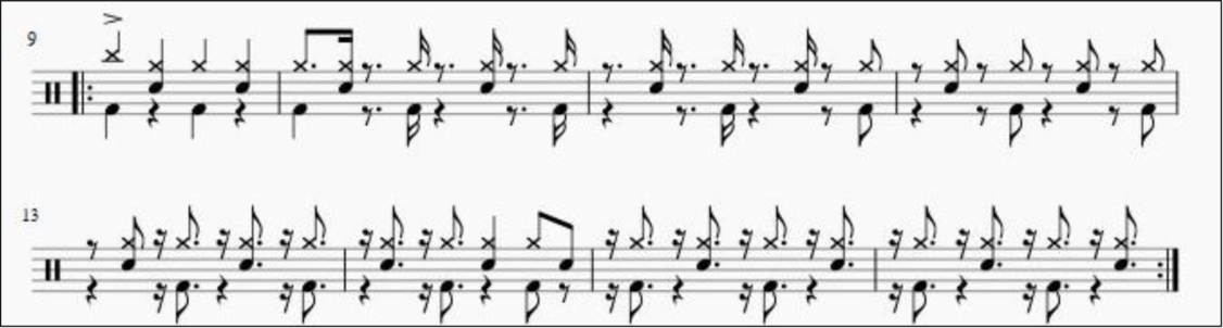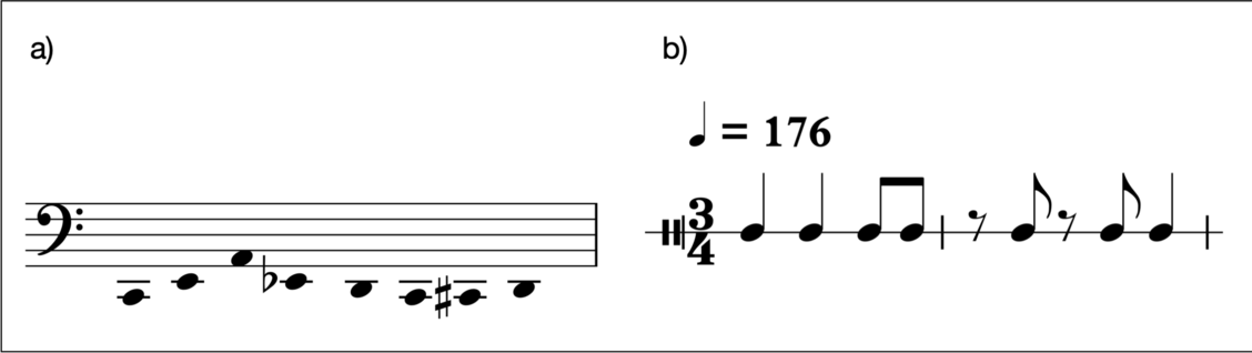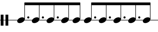 This ten-digit sequence is translated into different musical patterns throughout the piece, mainly, as the following rhythm (Figure 14):