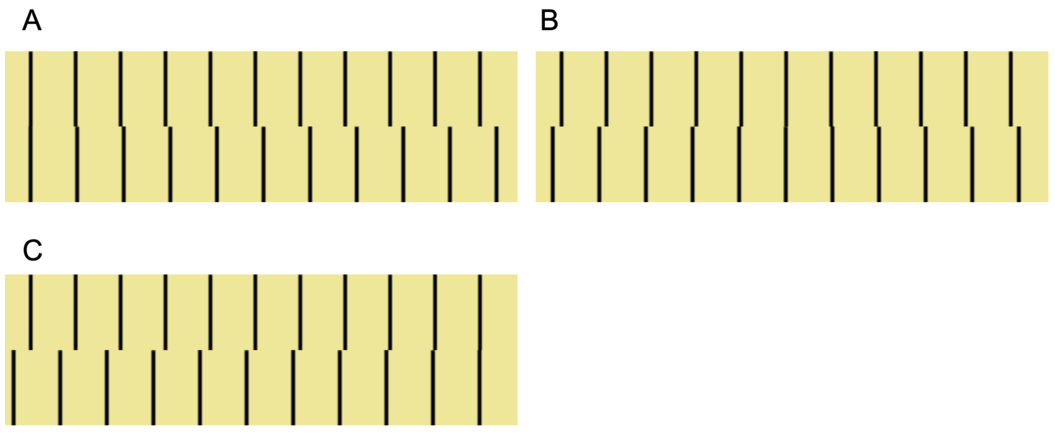 Music generally falls in the order of example A. In my vision, there are three main causes for this effect: 1) the temporal nature of music, 2) the compositional approach of music and 3) the presentation of music.