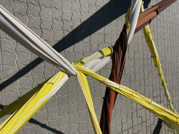 Even though the connecting costumes in this research are crafted to specific artistic projects, they also travel between events. As such, the connecting costumes do not merely belong to one specific performance context. Moreover, the connecting costumes are not crafted to fit specific bodies and thus anyone – regardless of age or gender, for example – can wear the wearable parts on top of whatever they are wearing. As my research intention is to explore what the connection costumes evoke in the wearers, I suggest that the costumes act more as prototypes than as finished products. In Probes, toolkits and prototypes: three approaches to making codesigning Sanders and Stappers write that prototyping “confront[s] the world, because the theory is not hidden in abstraction” (Sanders & Stappers 2014, p. 6), as they are designed to “provoke or elicit response” (Sanders & Stappers 2014, 9). I suggest that in employing prototyping within artistic research the connecting costume(s) becomes an invitation to respond and medium to evoke dialogue. Moreover, prototyping highlights that we – humans and more-than-humans – are in “a state of constant becoming” (Arrigoni et al. 2014, 14) and thus prototyping are openings for exploring different interpretations of what the connecting costume(s) do and how they affect us sensorially and relationally.