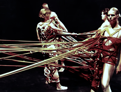 I claim the concept of connecting costume, however I am not the only artist that explores and/or uses costume or wearable objects that connects performers to each other. Therefore, I like to acknowledge a few artists/designers who with their artistic works related to the connecting costume concept perhaps more as distant relatives than as the close family that have informed the connecting costume concept directly.