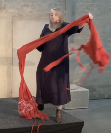 In Costume in Performance: Materiality, Culture and the Body Barbieri writes that “costume required a high level of material investment” (Barbieri 2017, 32). In the book Barbieri’s historical examples shows that textile material/costume have been creative resources for performance artistes long before the concept of new materialism (8) was coined. An example is Loie Fuller’s Serpentine Dance (1890). In Fuller’s encounter with the “generous fluidity of the fabric” (Barbieri 2017, 126), “the performer and the material became equal creative partners” (Østergaard 2022, 44). In context of Martha Graham’s Lamentation (1930), Barbieri suggest that “it is possible to assume that the choreography would have been developed through the use of costume from the very beginning” (Barbieri 2017, 128).