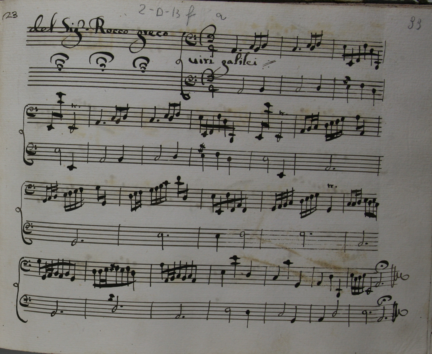 The final part of the Montecassino manuscript serves as a striking example of how pedagogical principles were applied in practice. Identified on the first page as the work of "Sig.r Rocco Greco," this set of eleven liturgical compositions represents one of the earliest documented instances of the cello being employed as a continuo instrument in a liturgical setting — an indication that this practice was likely prevalent in Naples. Greco includes textual incipits at the beginning of each piece, thus revealing that these compositions are adaptations of eleven preexisting antiphons.