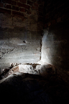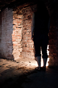 Kokemukseni tilallisista kerrostumista oli hyvin samankaltainen kuin tämä osmoottinen tai läpäisevä tilakokemus, sillä ulkoilma läpäisi keskitalvella kellarin huokoiset seinät kuin ihmisen ihon, ja tilan fyysiset äärirajat hämärtyivät huokoisuuden lisäksi myös liikkuvien projisointien ’puhkoessa’ näkymiä ulkomaisemaan. Kellarigalleriassa vallitsevalla lämpötilalla ja aikakäsityksellä oli tilallisuuden kannalta paljonkin merkitystä. Esiintyjän paljaat ihoalueet ja loppukesästä muistuttavat projisoinnit veden keskellä asettuivat vasten tilassa vallitsevaa kylmyyttä. Tämä ’väli-ilmasto’ korosti ajatonta ja paikatonta tunnelmaa, jolloin ikkunattomassa kellarissa oli vaikea määritellä tai muistaa, mikä vuodenaika tai kellonaika milloinkin vallitsi.