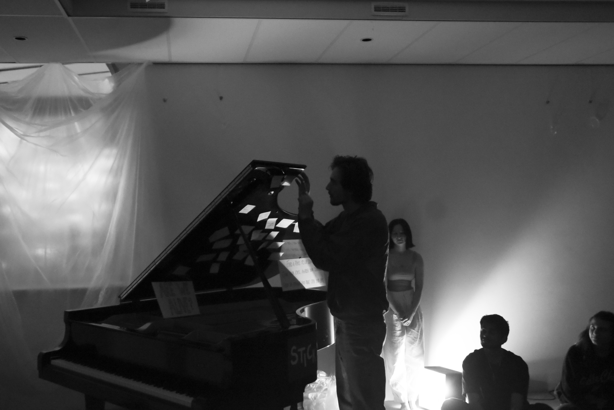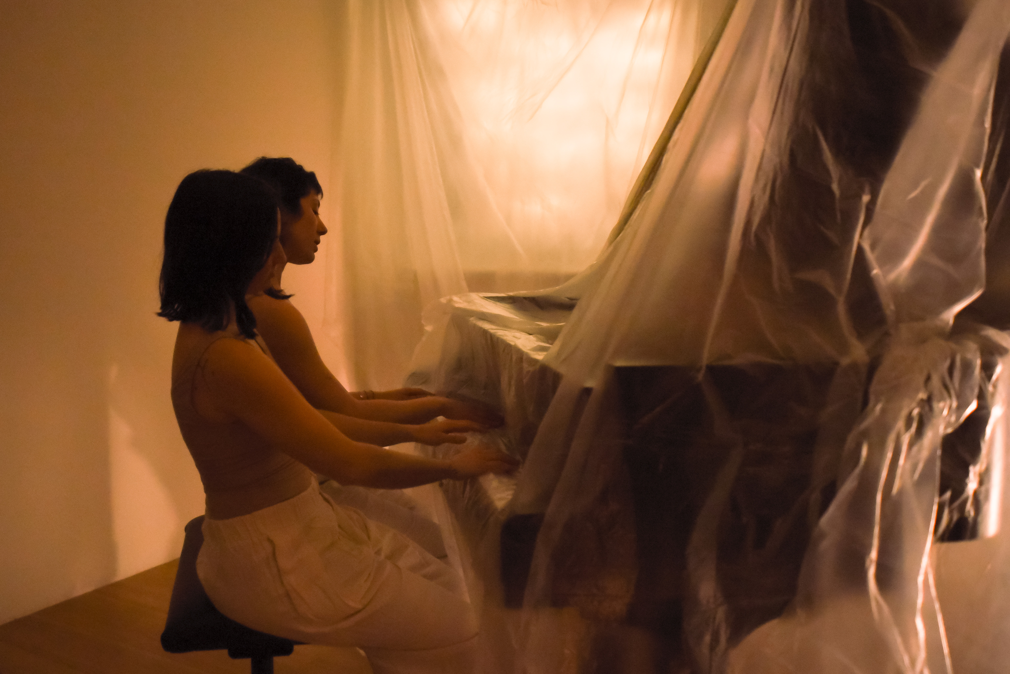 The third try-out further reinforced these ideas through my own physical experience - liberating myself through movement and exhaustion, a practice previously absent from my artistic vocabulary. How does seeing a classically trained pianist jump to the point of exhaustion while the audience enters the performance space shift our perception of what it means to be a pianist? My practice continues to challenge rigid artistic roles, embracing a non-hierarchical, fluid conception of the performer’s place. This urgency to reframe the performer’s role has never been more visible in my work.