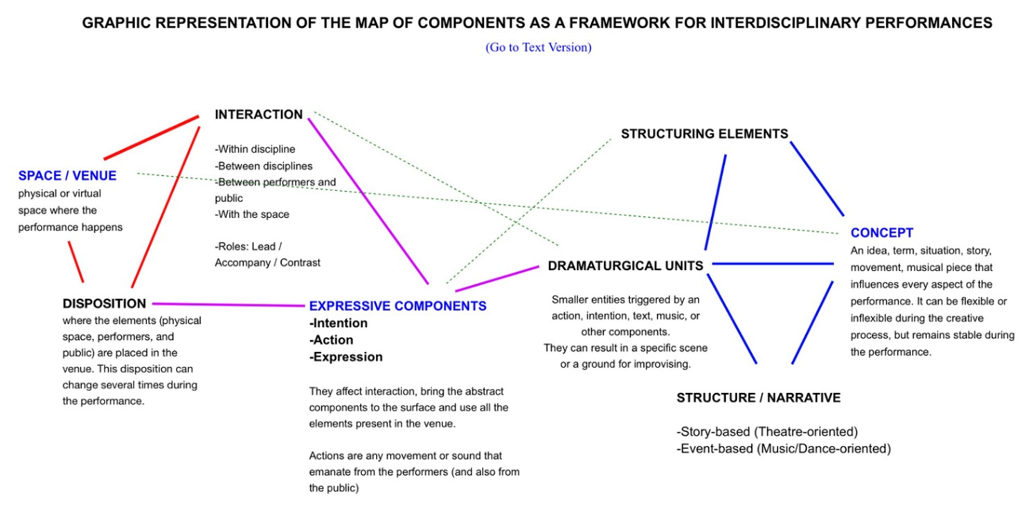 In his research, Joel Gester (2021) develops the Map of Components, a framework for interdisciplinary performances with classically trained musicians, dancers, and actors. This tool forms a key foundation for my work, which I will expand on in Chapter 5 to analyse both the creative process and performances. Here, I will outline its key principles.
