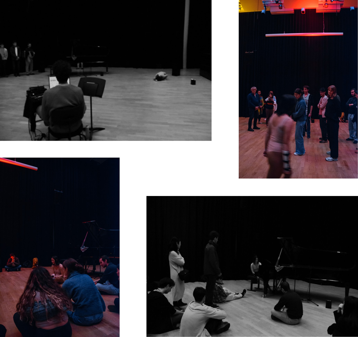 By this stage, several key components were in place: the performers, the performance space, a defined time limit (30–40 minutes, due to its inclusion in the Student Collaborative Festival), and an emerging conceptual framework.