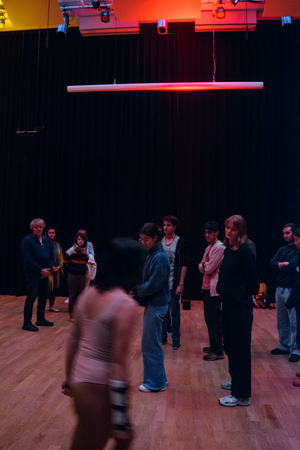The decision to begin the performance before the audience entered was intended to create the sensation of an event with no clear beginning. This mirrored historical choreomania episodes, where people would suddenly become part of an event already in progress, with no clear beginning or explanation. Therefore, this approach aimed to blur the line between observer and participant, immersing the audience in an experience that felt immediate and inevitable.