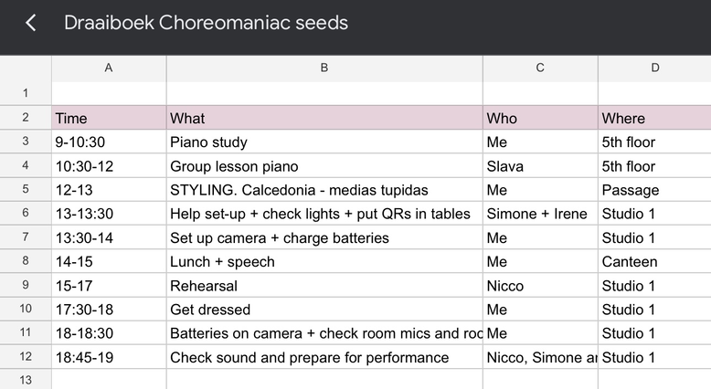 While the production process was largely successful, certain aspects could have been addressed earlier. Fortunately, accounting for unforeseen circumstances - such as allocating extra time for each action in the draaiboek (script) - allowed me to resolve last-minute issues on the day of the performance. However, balancing logistics, production, performance, piano playing, research, analysis, and reflection proved to be far more demanding than expected.
