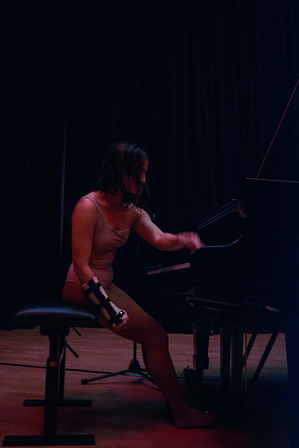 One of the key challenges was the balance between improvisation and structure. While the flexibility to adapt in real time is valuable, it also carries risks if transitions between movement, voice, and piano are not thoroughly rehearsed, or if the overarching concept is not clearly defined. In this performance, the conceptual direction shifted significantly during the process, with the final idea still in development just a week before the try-out. This lack of clarity resulted in certain elements being underdeveloped. For example, the improvised music and humming were meant to convey vulnerability, but this did not fully translate in the piano improvisation.