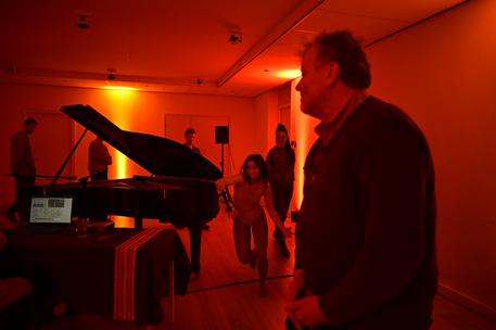 In addition, the venue for this performance was different, and I did not have the opportunity to rehearse in that space beforehand. This made it challenging to envision how movements would unfold or address practical concerns, such as the placement of performers. Considering these alternatives was especially important after the reflections from the previous try-out. I intentionally placed the piano off-centre, as I did not want it to be the focal point, yet the audience naturally gravitated toward it, unintentionally leaving Niccolò on the periphery. These spatial considerations were crucial but were only addressed toward the end of the process - something that would have been much easier to manage if they had been planned earlier.