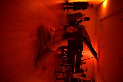 On the other hand, the interaction between performers was particularly strong, especially during the classical seeds and the improvisations with voice, piano, and live electronics. This try-out saw a much deeper connection between performers and the audience. During the movement improvisation, I first engaged in intense yet vulnerable eye contact before slowly approaching and gently touching their arms. This gradually evolved into a collective circular movement around the stage, with everyone eventually joining in. In this way, the audience naturally became part of the performance space, blurring the line between observers and participants.