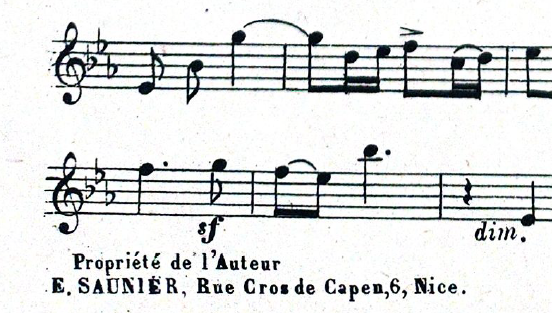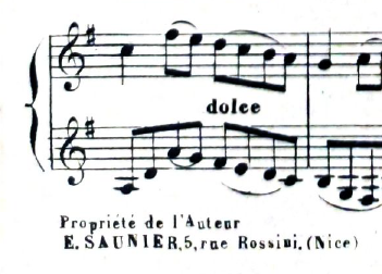 An additional interesting fact is that, thanks to the works found that were not mentioned in López-Suevos’2 research, we now know that Eugenia lived at two different addresses in Nice. This information comes from the indication "Propriété de l’Auteur E. Saunier" found on her published scores, which list two different addresses: